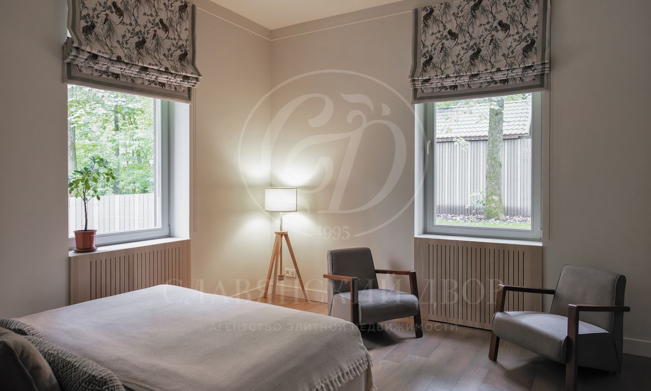 Участок площадью 25 соток утопает в зелени под вековыми дубами. Вилла расположена в уникальном стародачном месте — посёлке Новодарьино РАН, всего в 20 км по Рублёво-Успенскому шоссе.