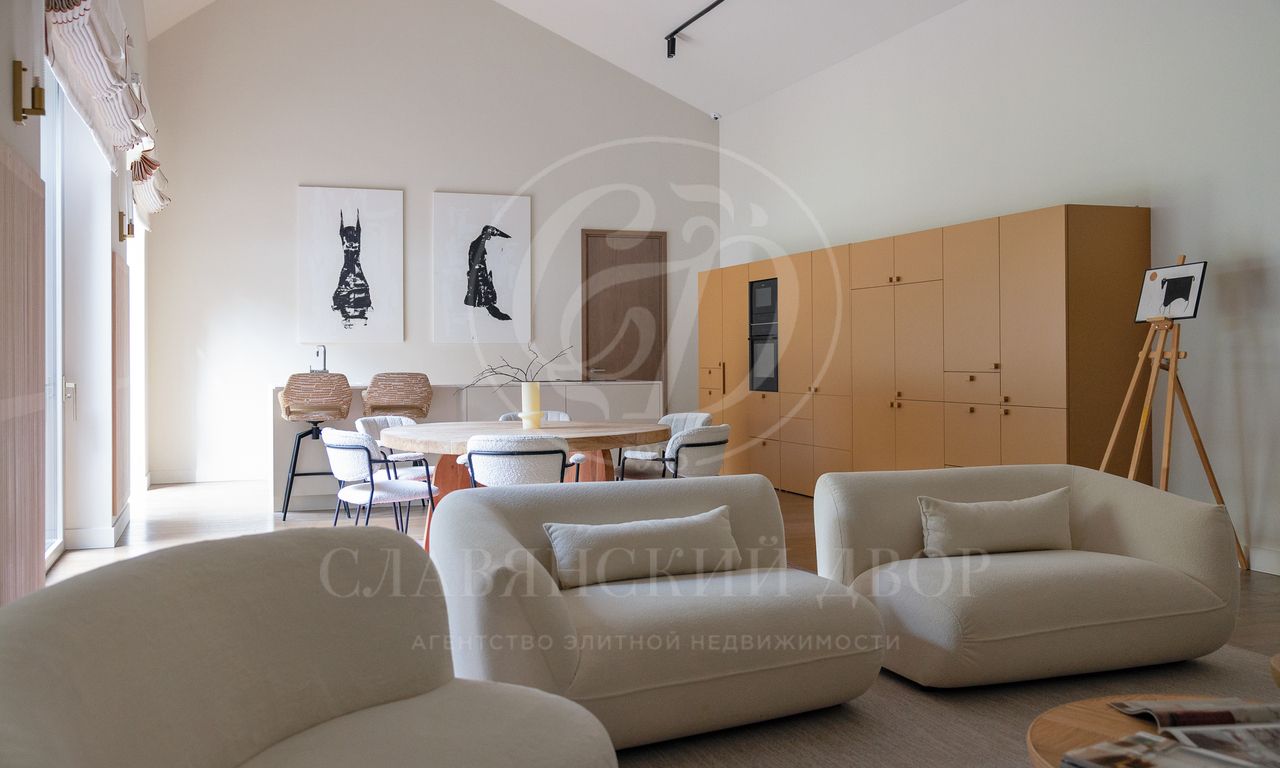 На продажу предлагается одноуровневый дом площадью 550 кв.м. с функциональной планировкой и потолками до 7 метров. Интерьер выполнен в скандинавском стиле с элементами рустика и contemporary: светлые пространства, натуральные материалы, фактурные акценты и воздушность создают гармонию уюта и масштаба.