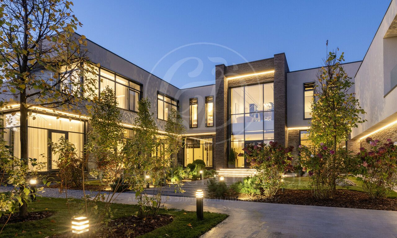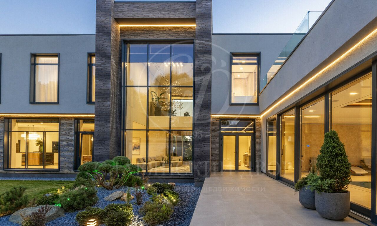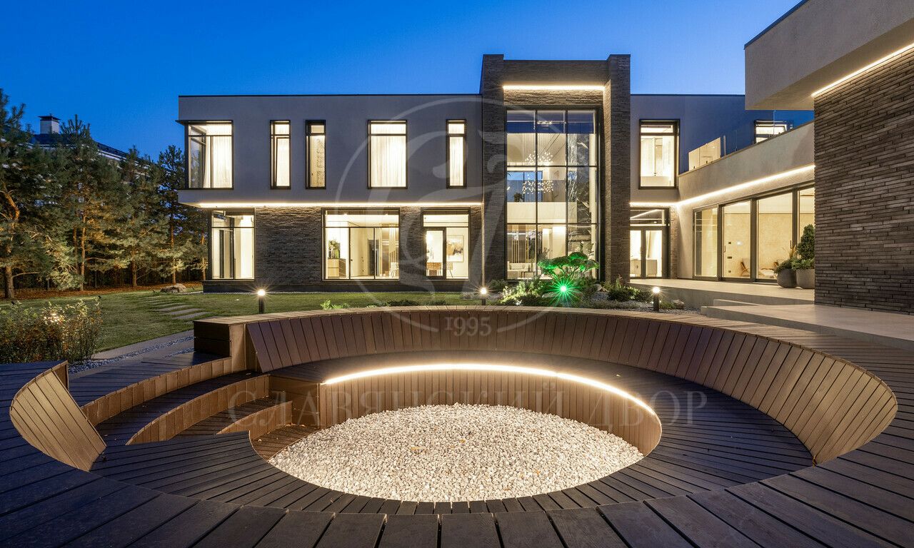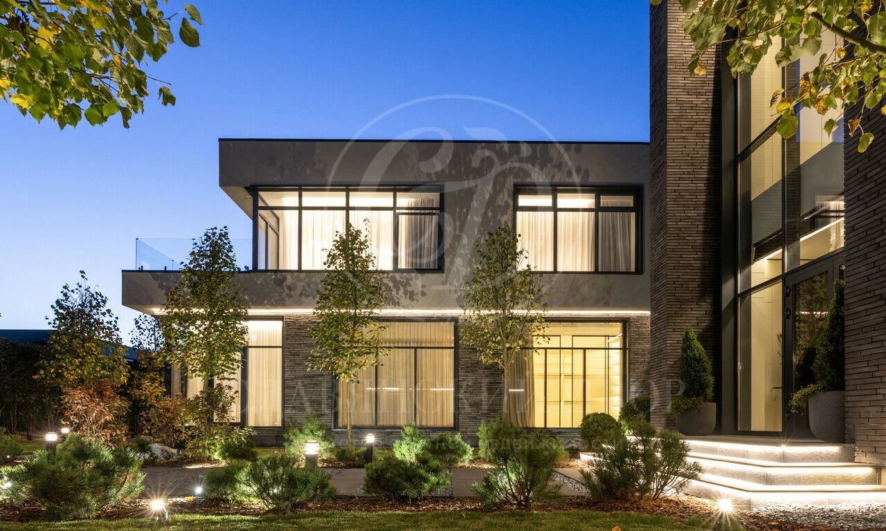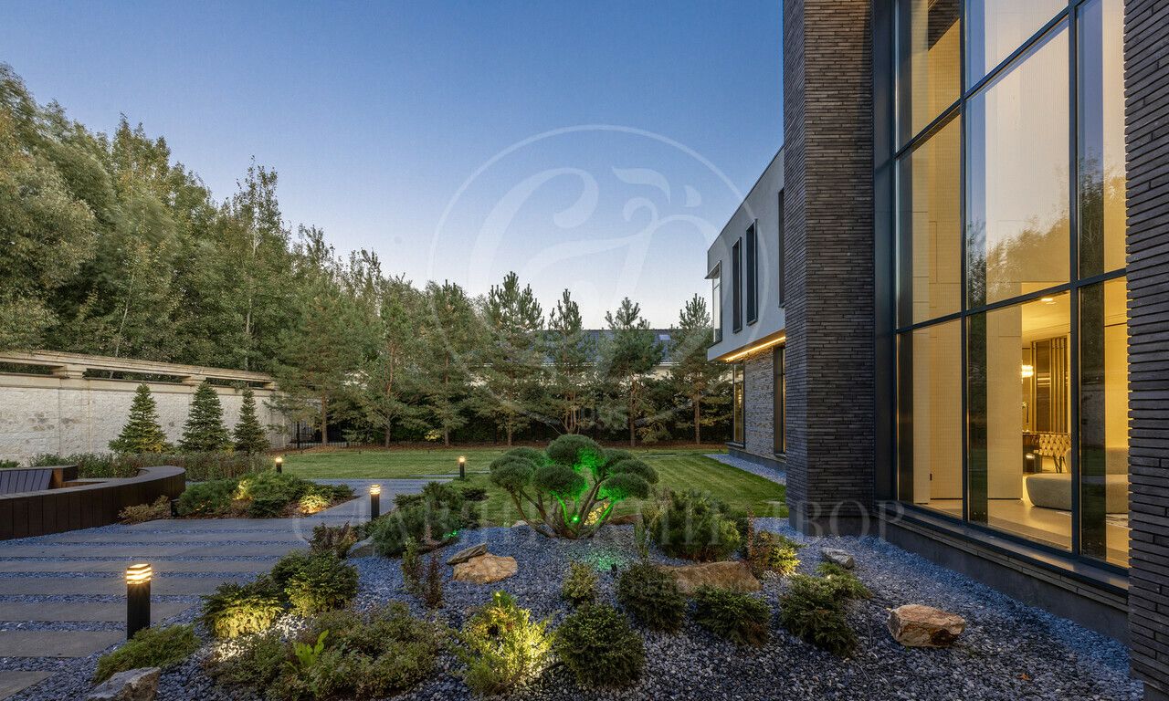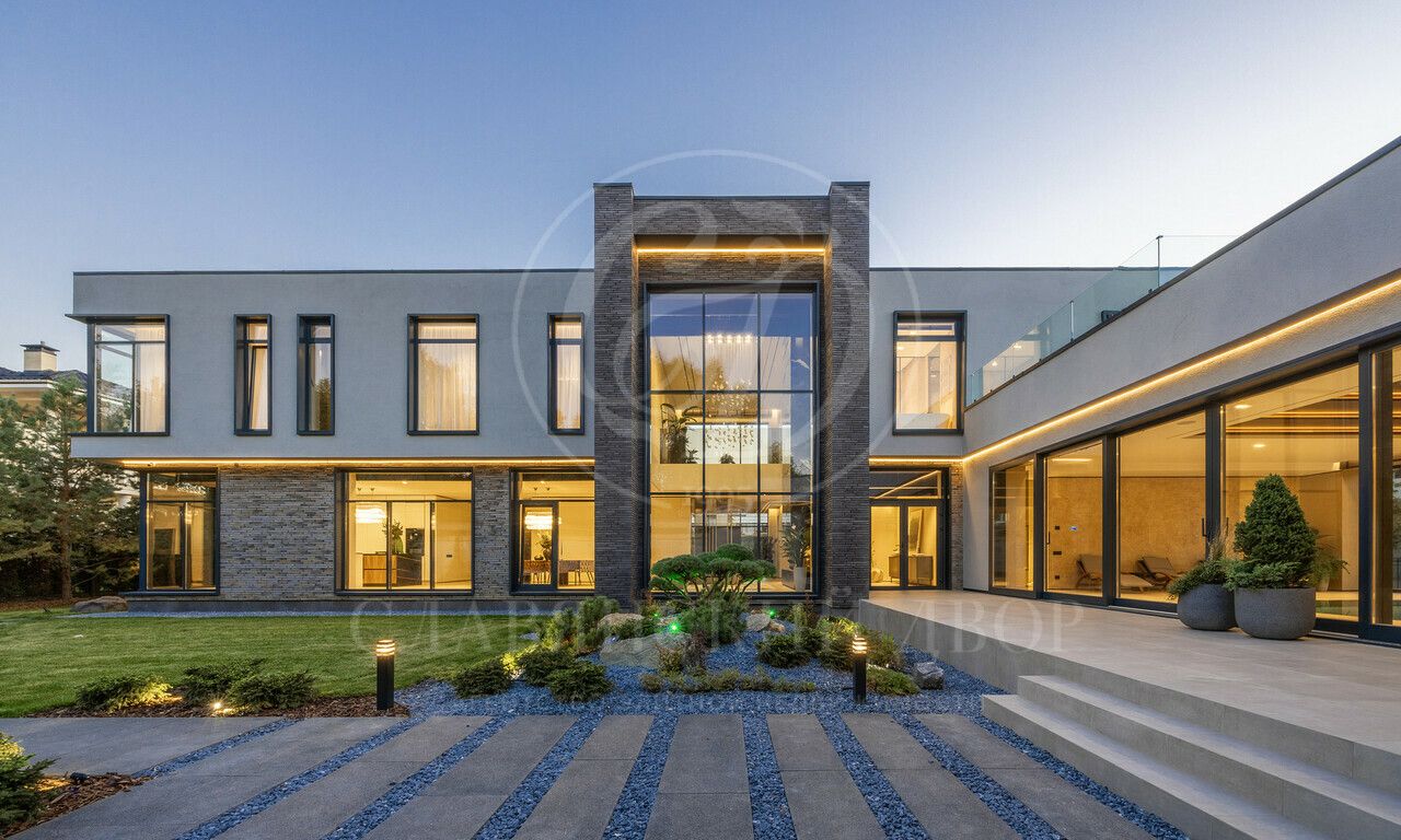 На продажу предлагается дом 1000 кв.м. расположен на участке 20 соток в одном из лучших поселков Подмосковья «Ренессанс Парке» — рядом с сосновым лесом. Фасад выполнен в современном стиле из натурального камня и дерева. Просторная терраса, бассейн и spa-зона, панорамные окна, высокие потолки, квартира для персонала.