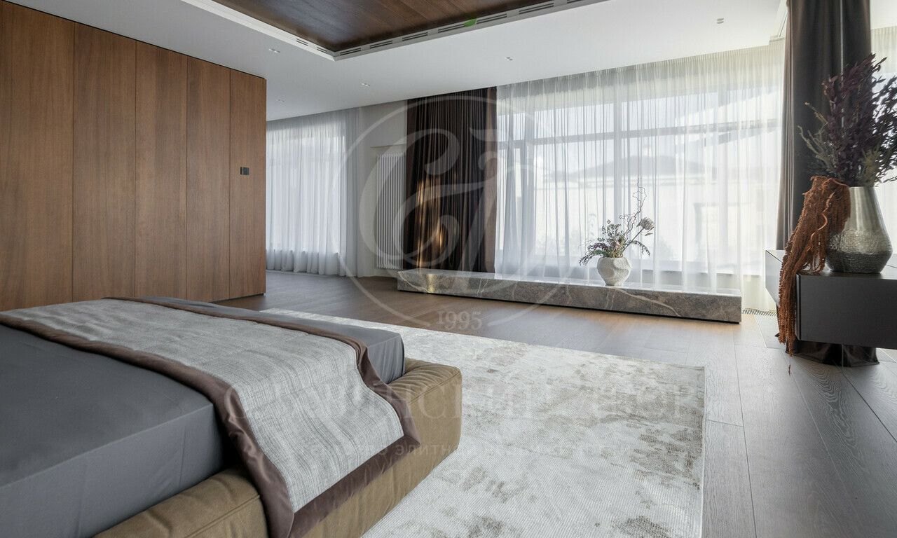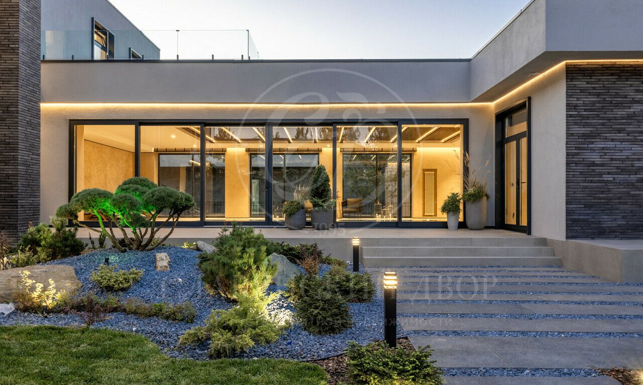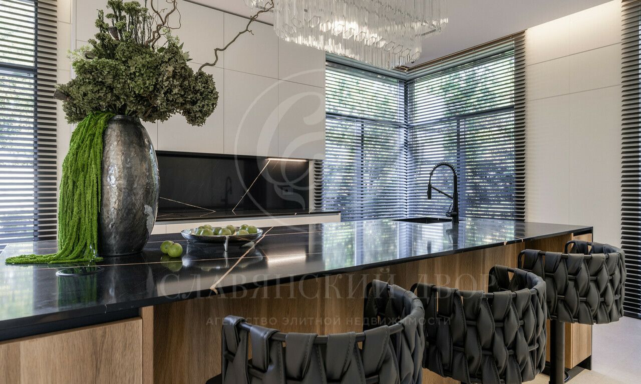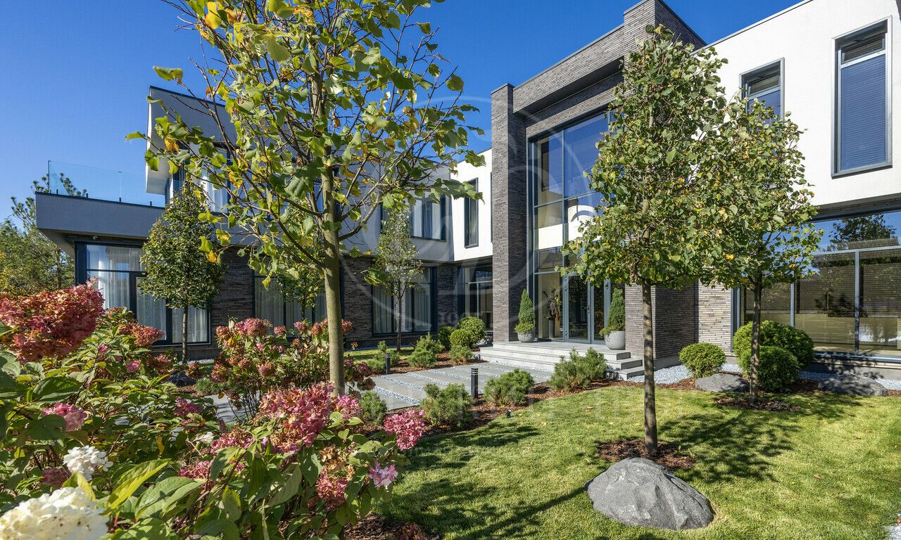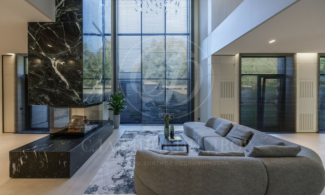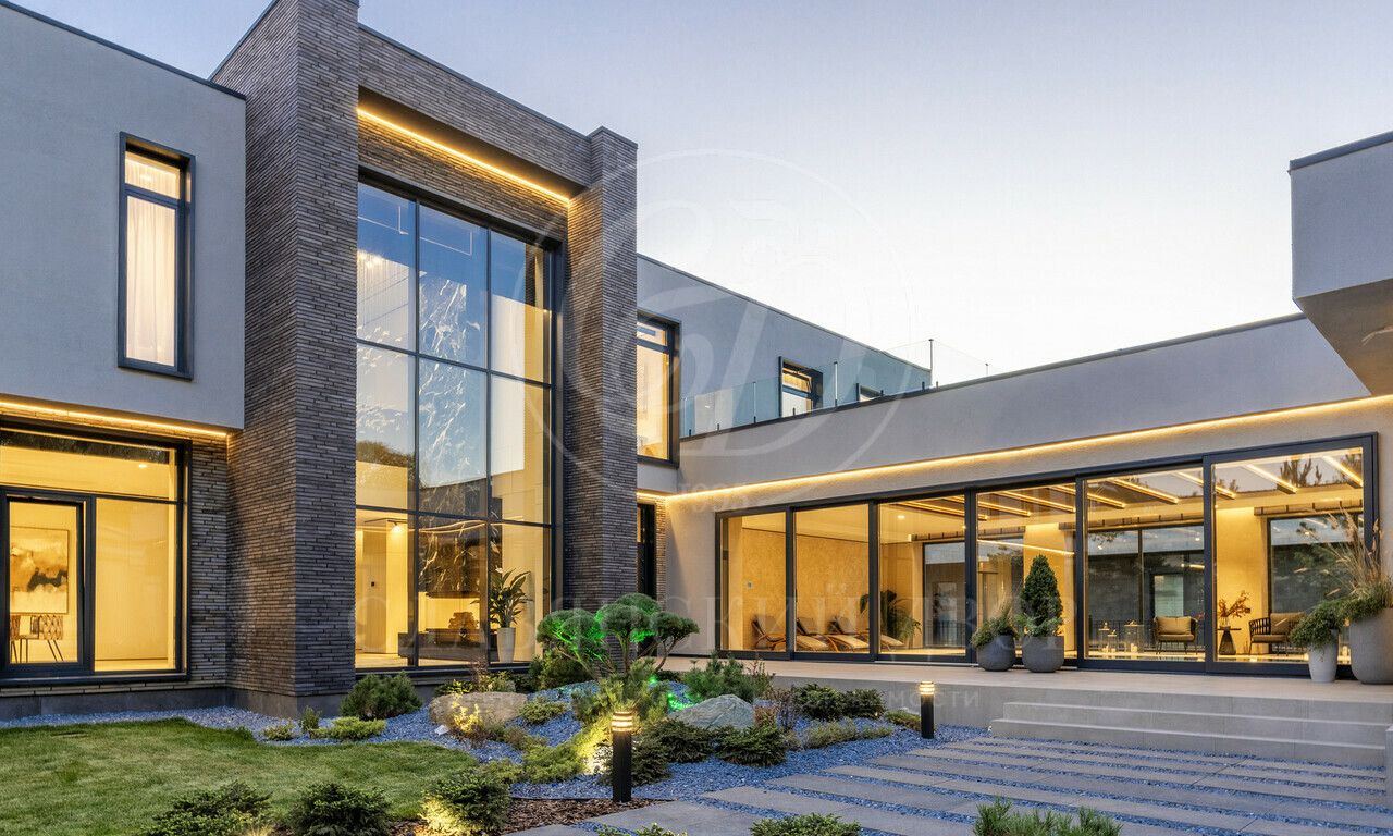 На продажу предлагается дом 1000 кв.м. расположен на участке 20 соток в одном из лучших поселков Подмосковья «Ренессанс Парке» — рядом с сосновым лесом. Фасад выполнен в современном стиле из натурального камня и дерева. Просторная терраса, бассейн и spa-зона, панорамные окна, высокие потолки, квартира для персонала.