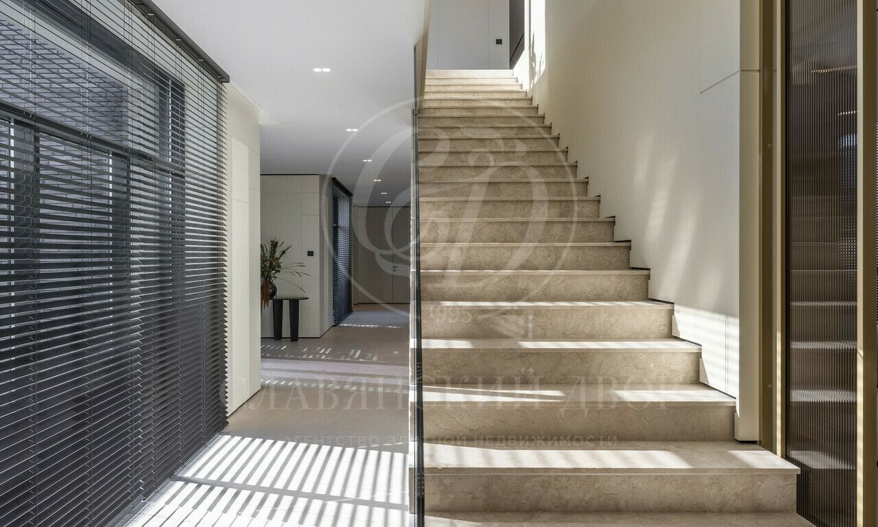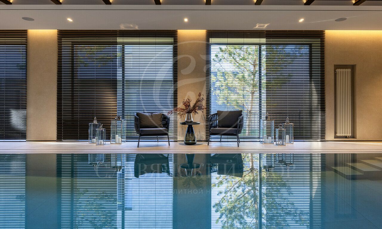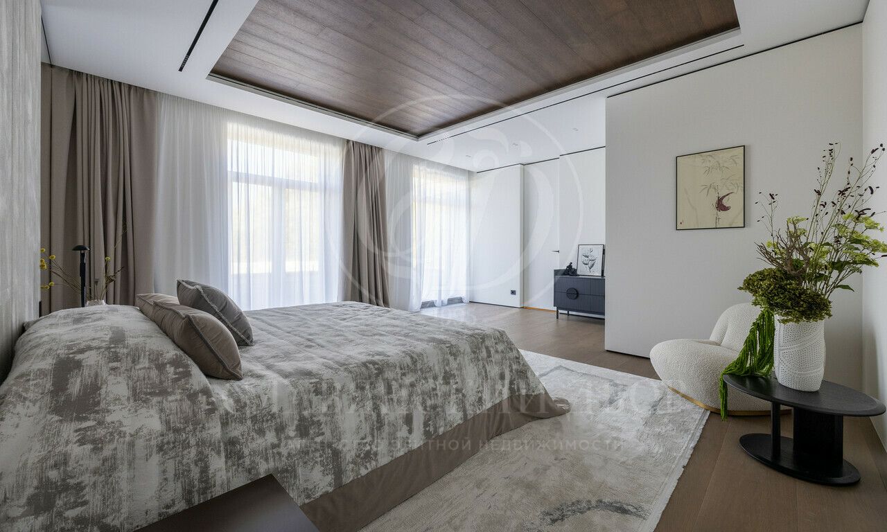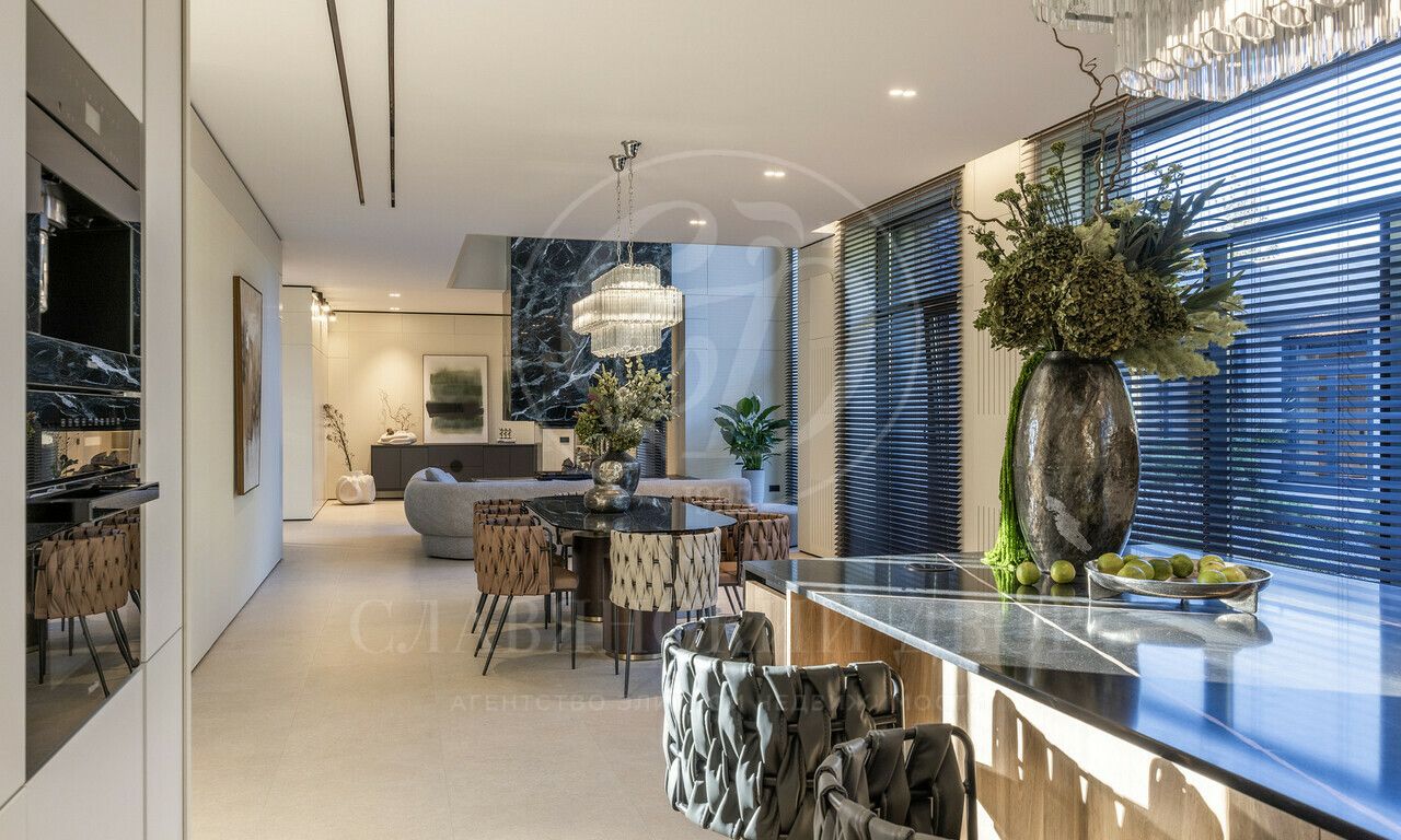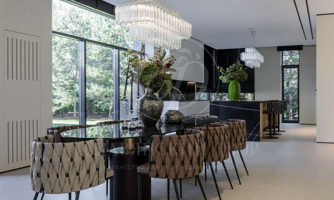 На продажу предлагается дом 1000 кв.м. расположен на участке 20 соток в одном из лучших поселков Подмосковья «Ренессанс Парке» — рядом с сосновым лесом. Фасад выполнен в современном стиле из натурального камня и дерева. Просторная терраса, бассейн и spa-зона, панорамные окна, высокие потолки, квартира для персонала.