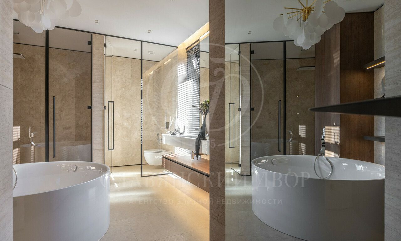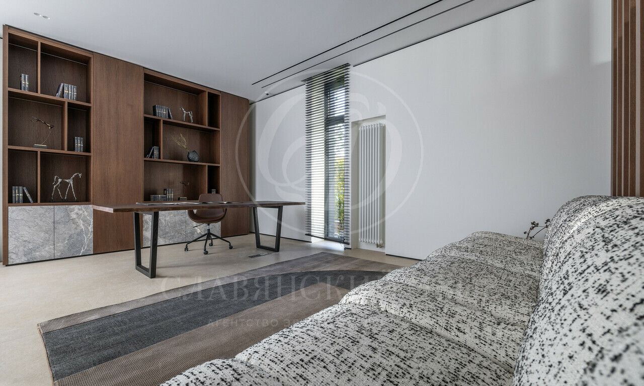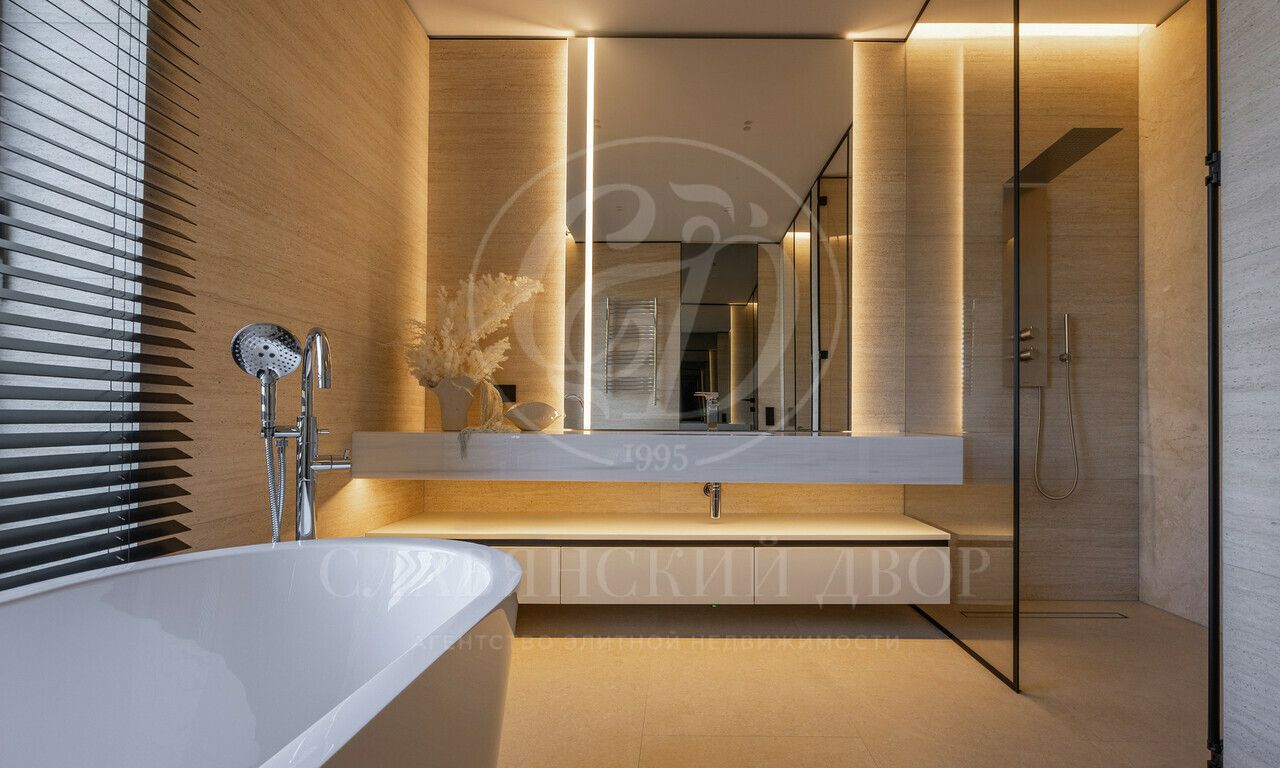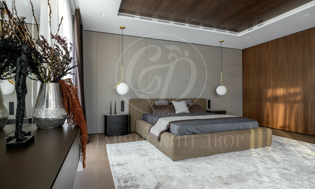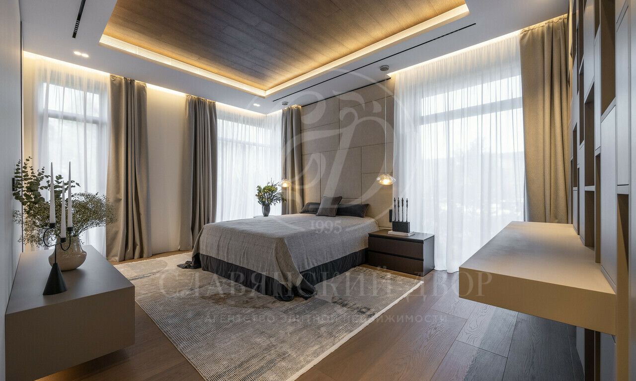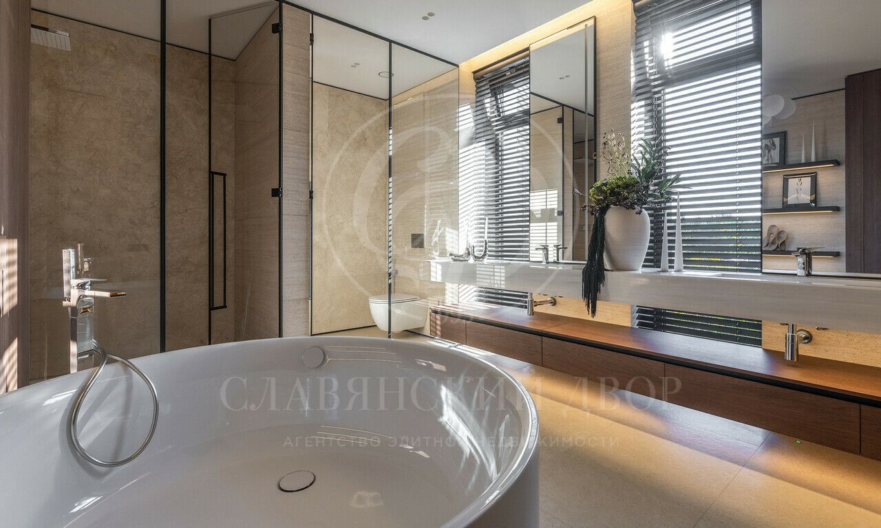 На продажу предлагается дом 1000 кв.м. расположен на участке 20 соток в одном из лучших поселков Подмосковья «Ренессанс Парке» — рядом с сосновым лесом. Фасад выполнен в современном стиле из натурального камня и дерева. Просторная терраса, бассейн и spa-зона, панорамные окна, высокие потолки, квартира для персонала.