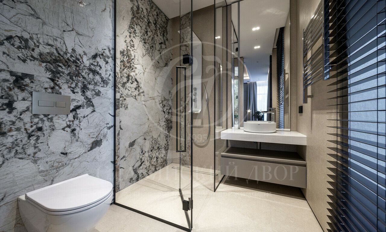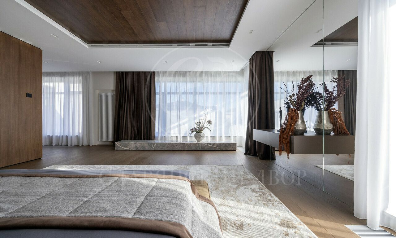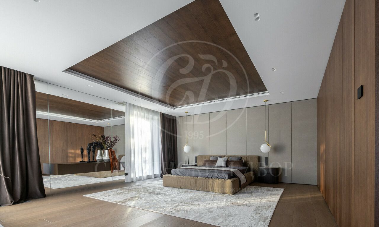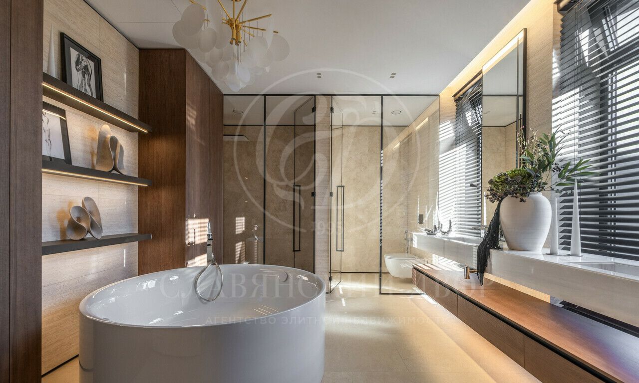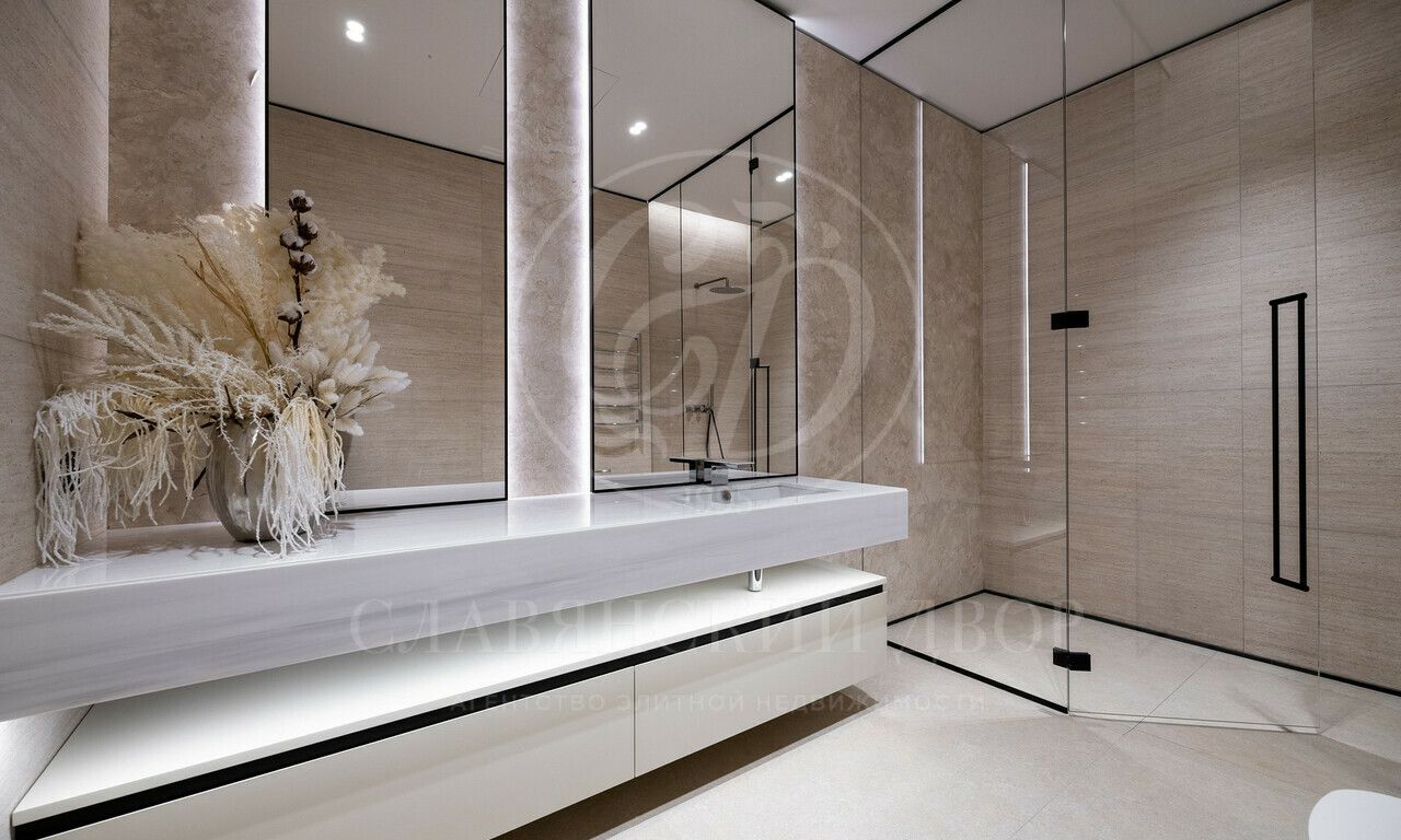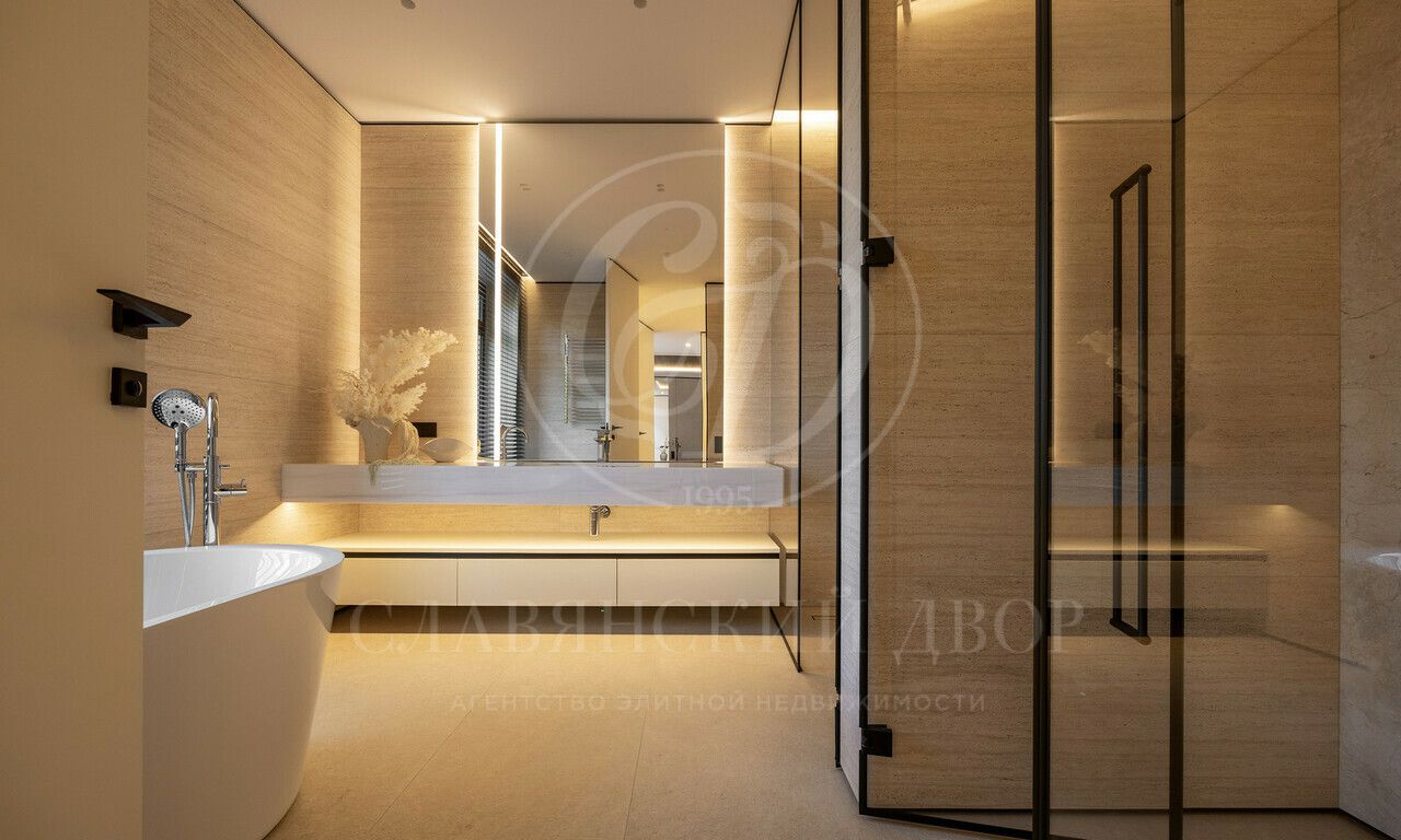На продажу предлагается дом 1000 кв.м. расположен на участке 20 соток в одном из лучших поселков Подмосковья «Ренессанс Парке» — рядом с сосновым лесом. Фасад выполнен в современном стиле из натурального камня и дерева. Просторная терраса, бассейн и spa-зона, панорамные окна, высокие потолки, квартира для персонала.