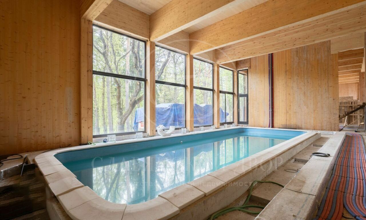 На продажу предлагается дом с бассейном на участке 42 сотки в КП «Усадьба Подушкинского Лесопарка», 7 км от МКАД (Рублёво-Успенское/Можайское ш.).