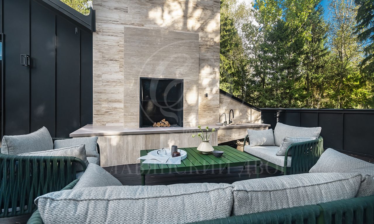 В доме предусмотрено 6 спален со своими ванными комнатами, просторная гостиная, светлая столовая с панорамными окнами, 2 кухни хозяйская и рабочая, кабинет, игровая комната, лифт и роскошная терраса с камином на 3 этаже. Продуман блок для персонала, сервисные помещения и помещения для хранения. Гараж на 2м/м. Современные инженерные системы , включающие в себя в том числе приточно-вытяжную вентиляцию, Уникальная система немецкого остекления со скрытым профилем.