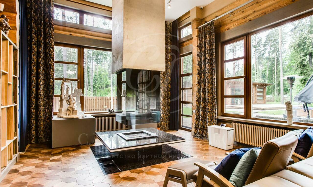 1 этаж: 2 гардеробные, холл, кабинет, хозяйская комната, 2 с\у, 3 спальни, гостиная с камином, кухня-столовая с выходом на большую террасу. Общая площадь террас в доме порядка 300 кв.м.