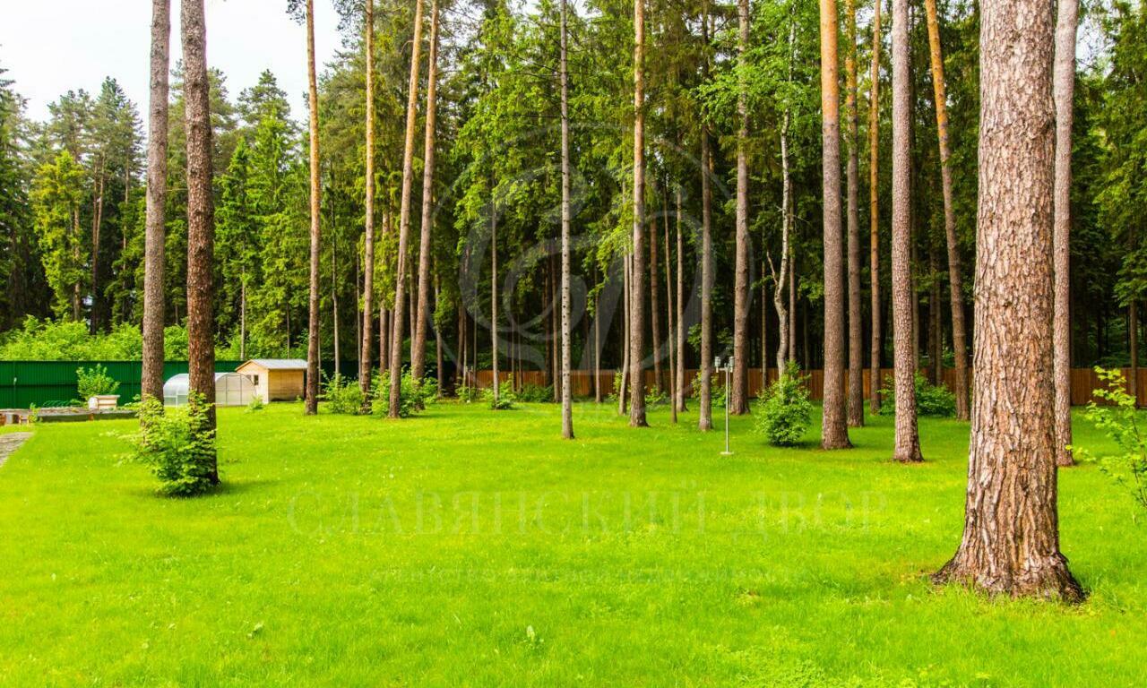 На участке вековые сосны, сад плодовых растений и кустарников (яблони, вишни, смородина).