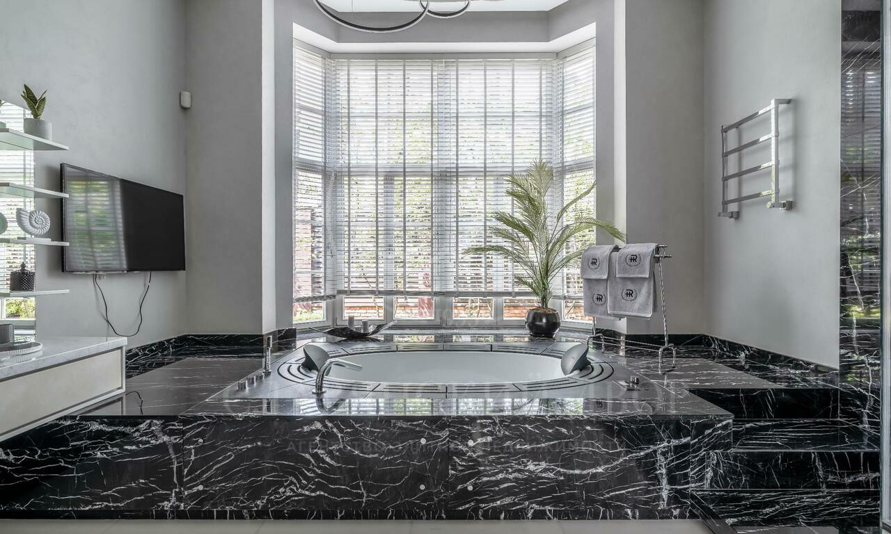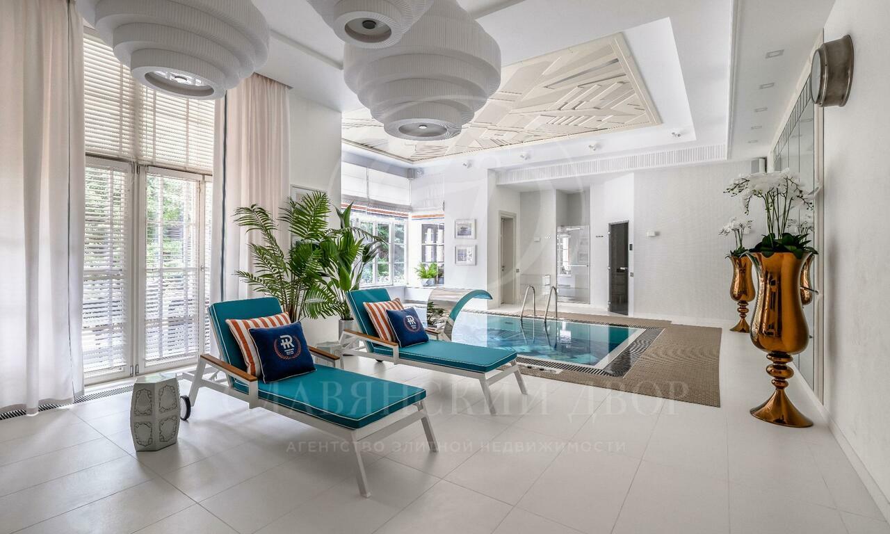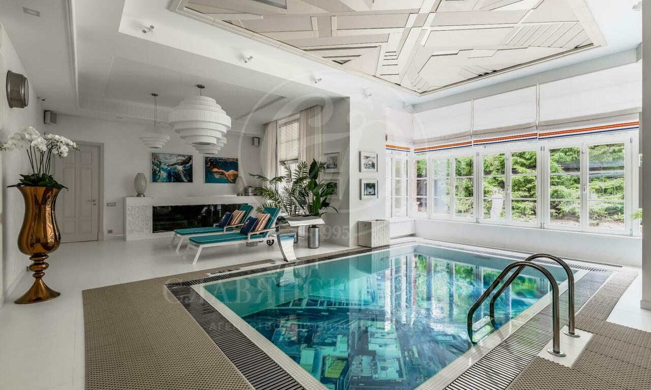 1 этаж: отдельная зона для приема гостей с камином, бассейномc противотоком и водопадом, хамам.