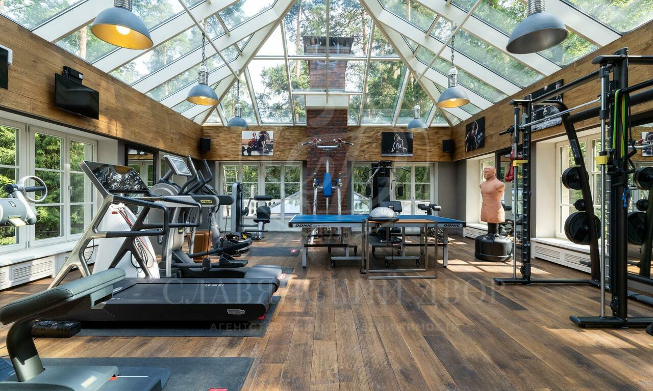 2 этаж: просторный спортзал Technogymс соляной комнатой, 4 спальные комнаты и кабинет.