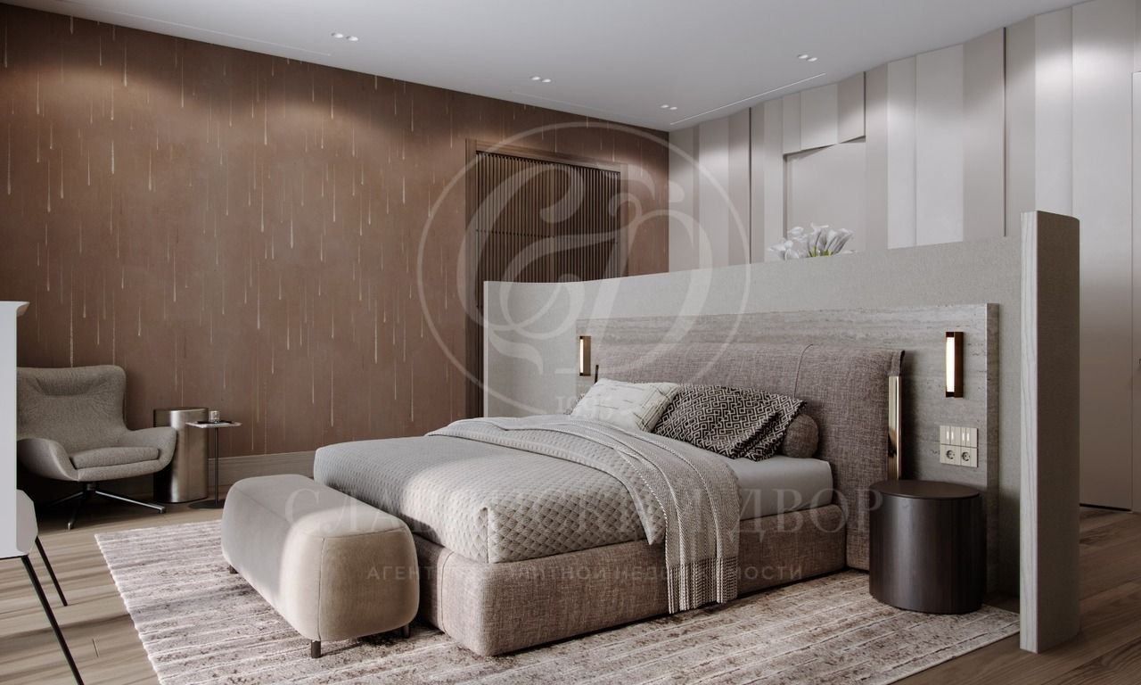 2 этаж: холл, главная спальня с двумя санузлами и гардеробными, 3 спальни с санузлами и гардеробными, спальня-игровая с санузлом и гардеробной, кухня для персонала, санузел для персонала, 3 спальни для персонала, постирочная, серверная.