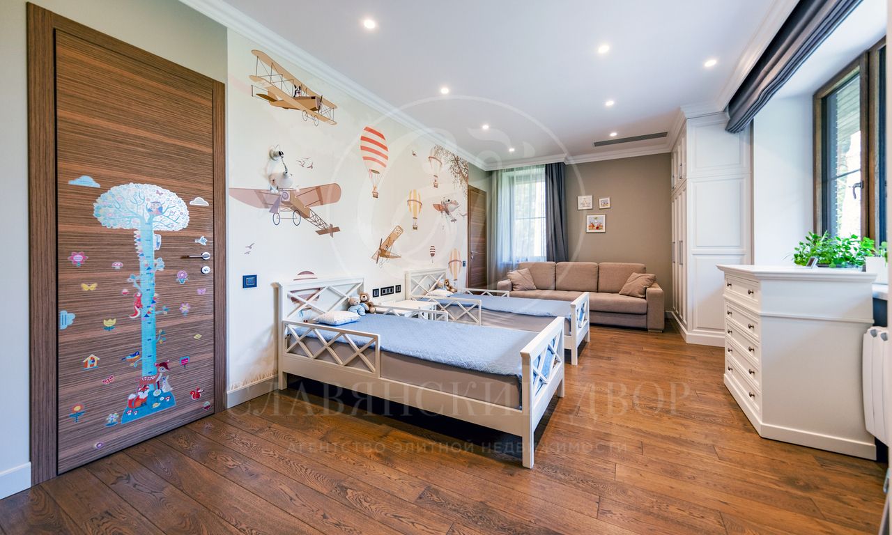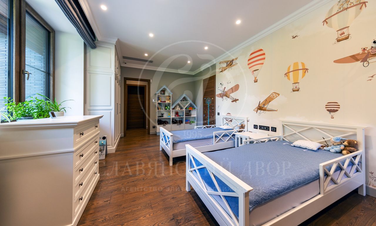 детский блок спальня, комната для няни с душем, кухня для детей, собственный вход с первого этажа.