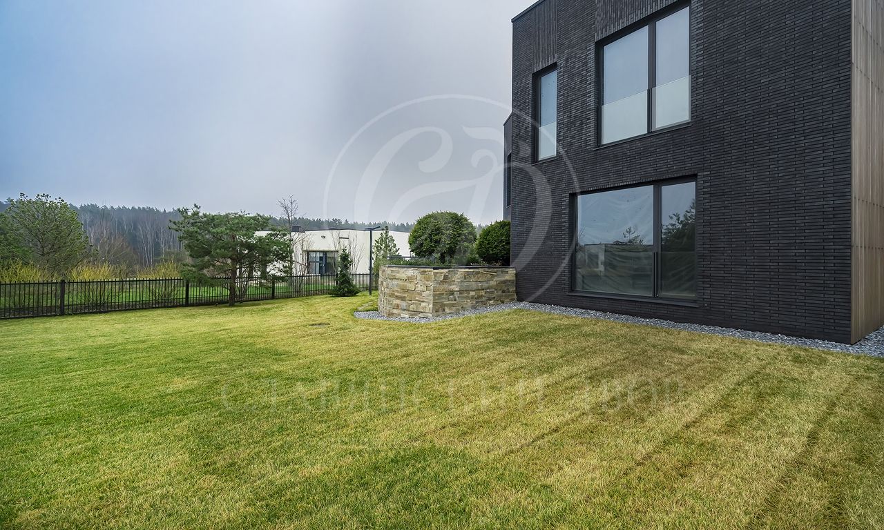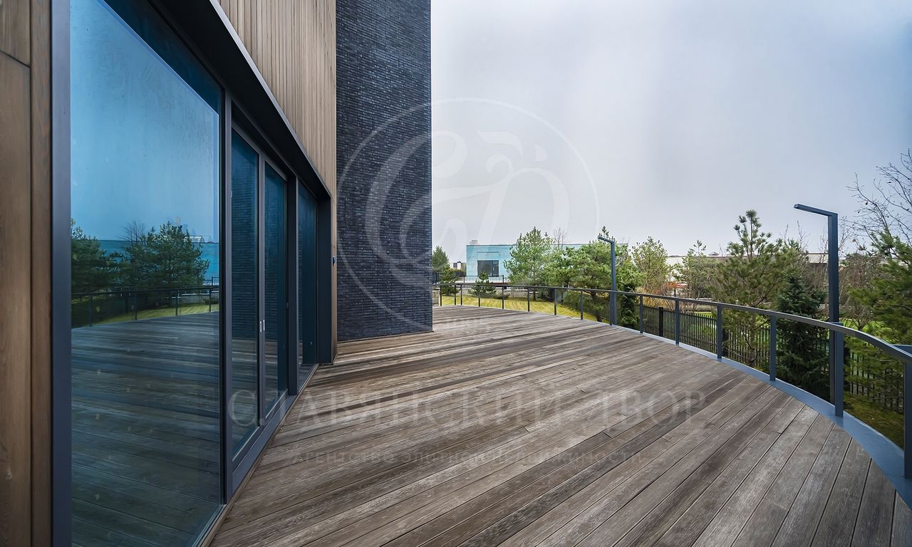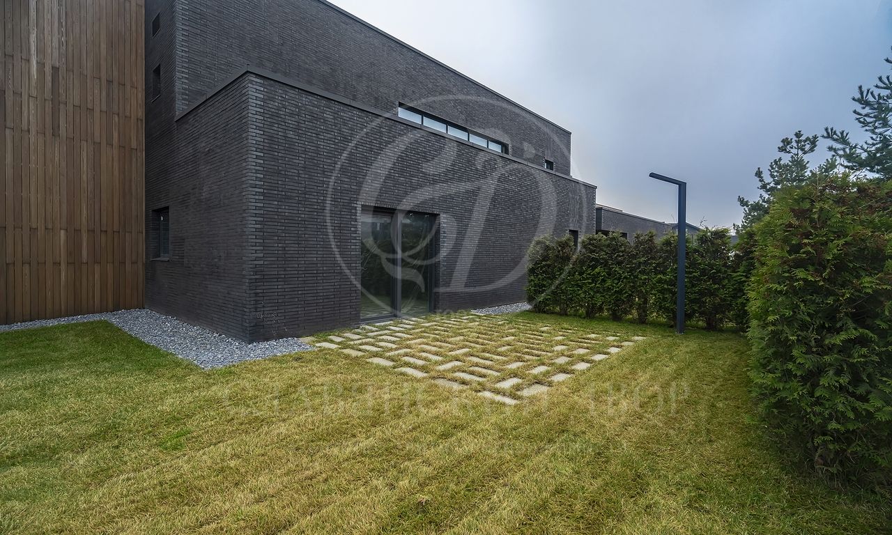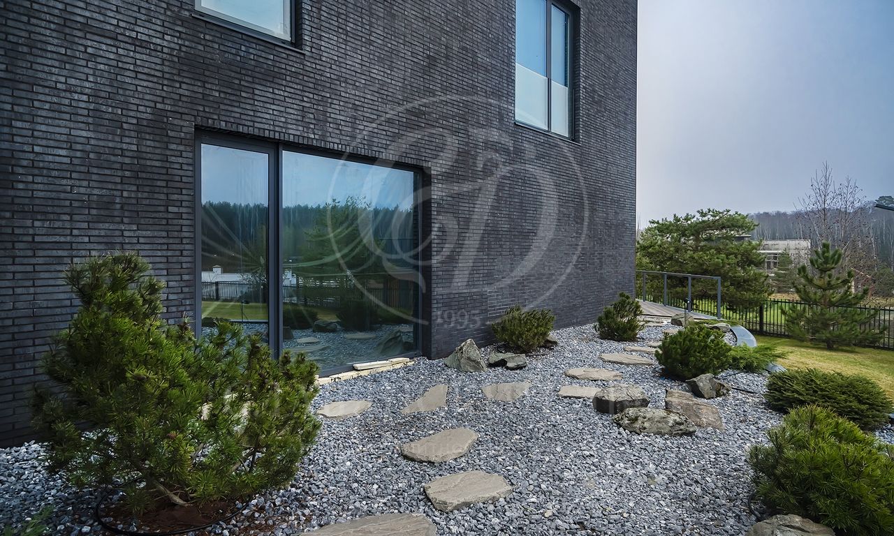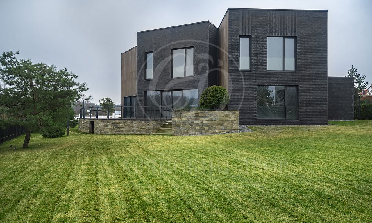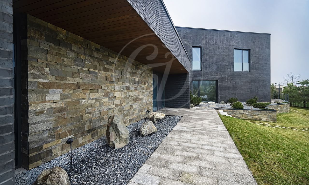 Фасад выполнен из клинкерной плитки Feldhaus Klinker, камня и лиственницы, окна Schuco, приточно-вытяжная система Breezart, кондиционирование Daikin, умный дом, конвектора
