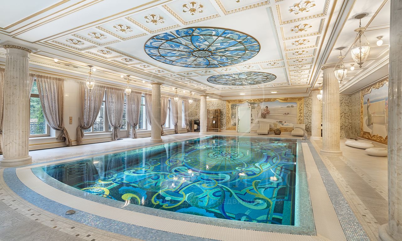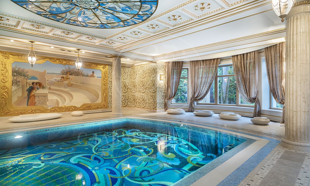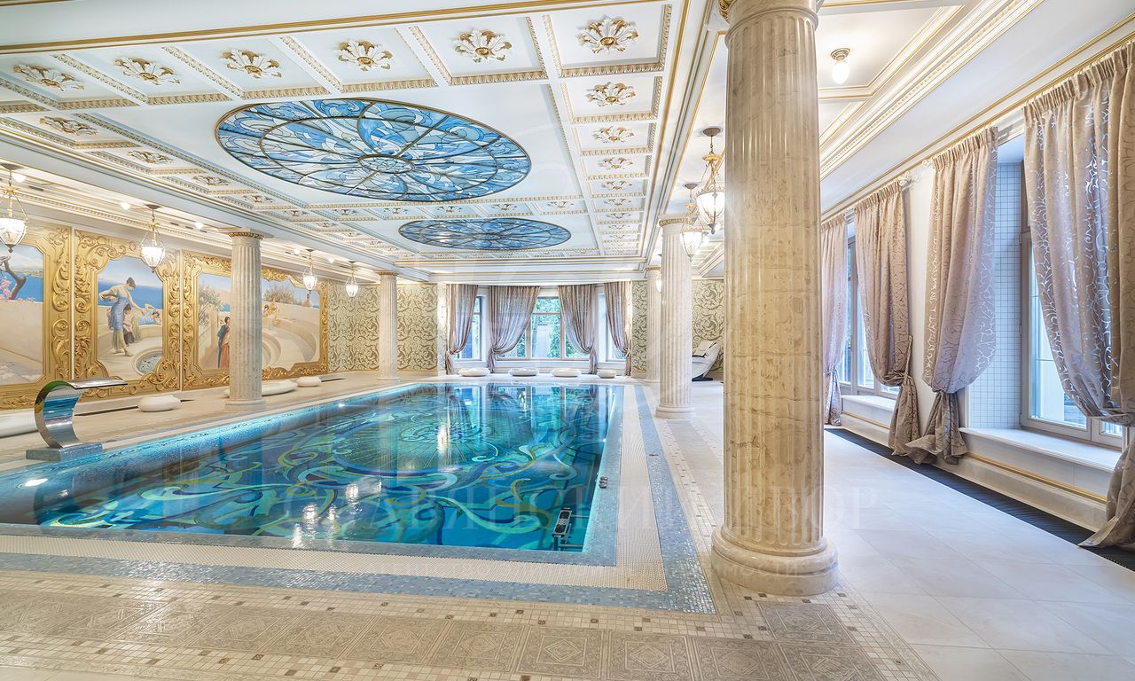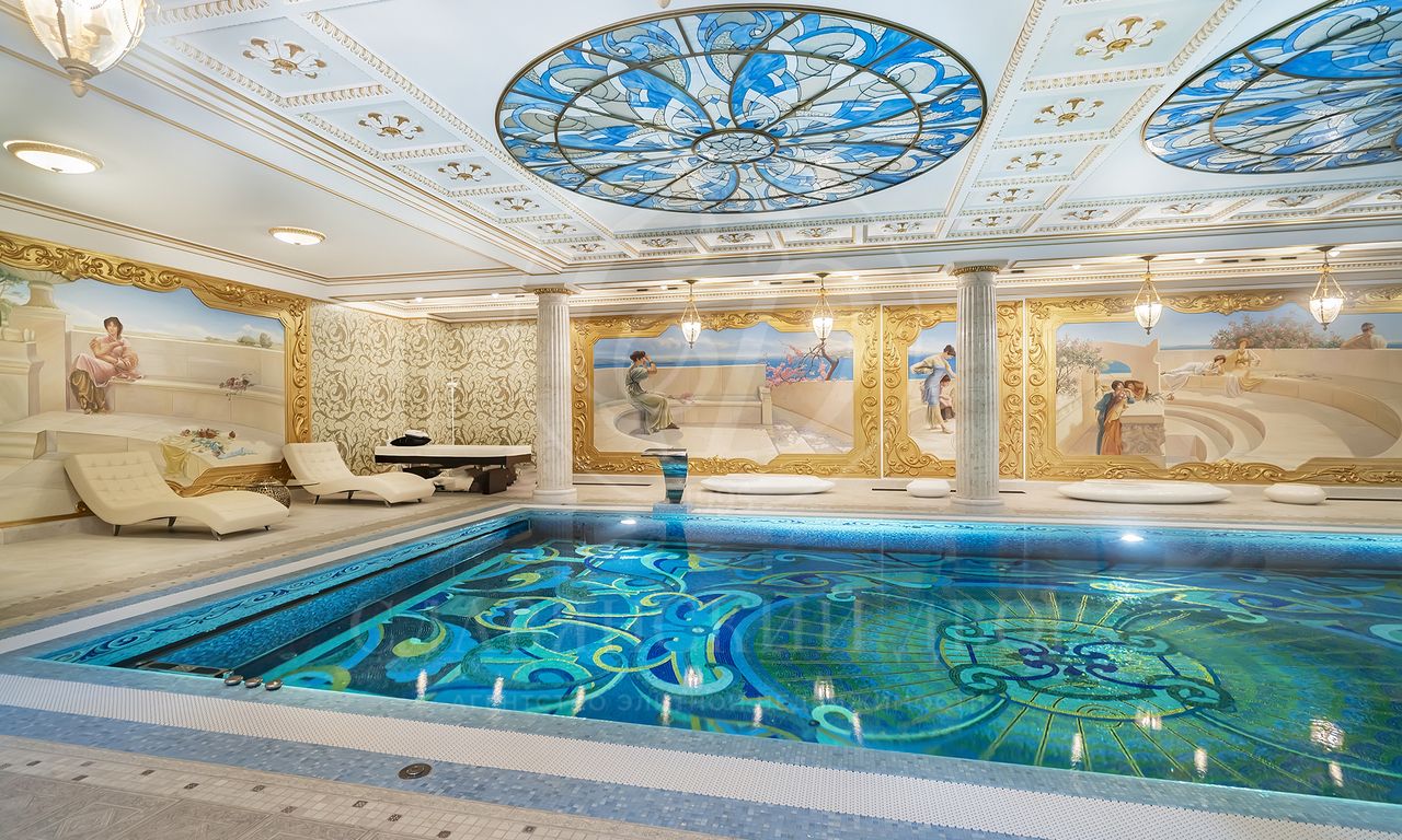 кухня, СПА-зона: бассейн, сауна, комната отдыха; 3 спальни, санузлы.