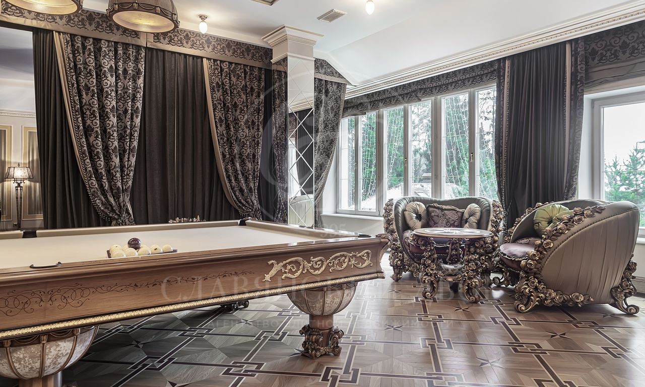 кухня-гостиная, кинотеатр, бильярдная, санузлы.