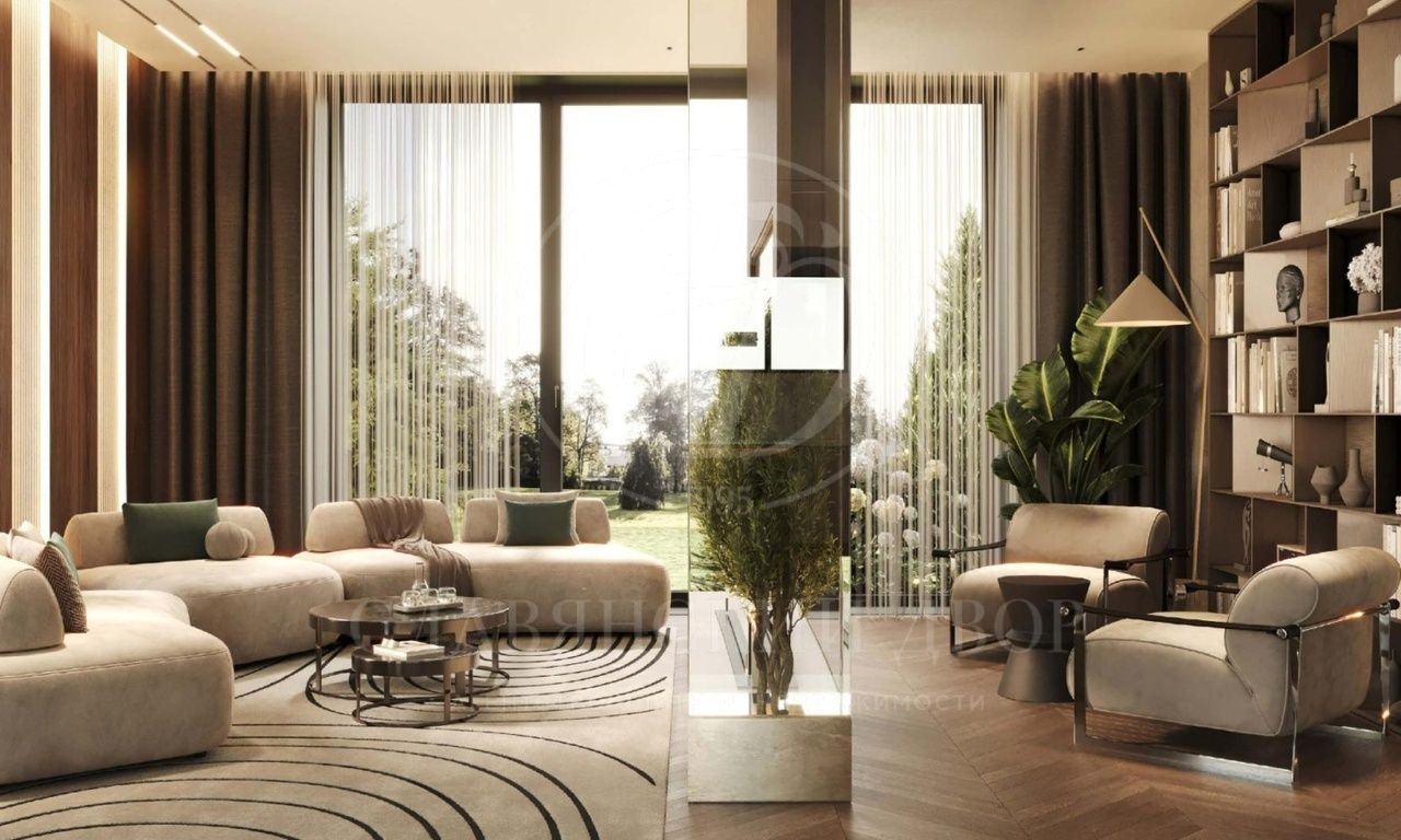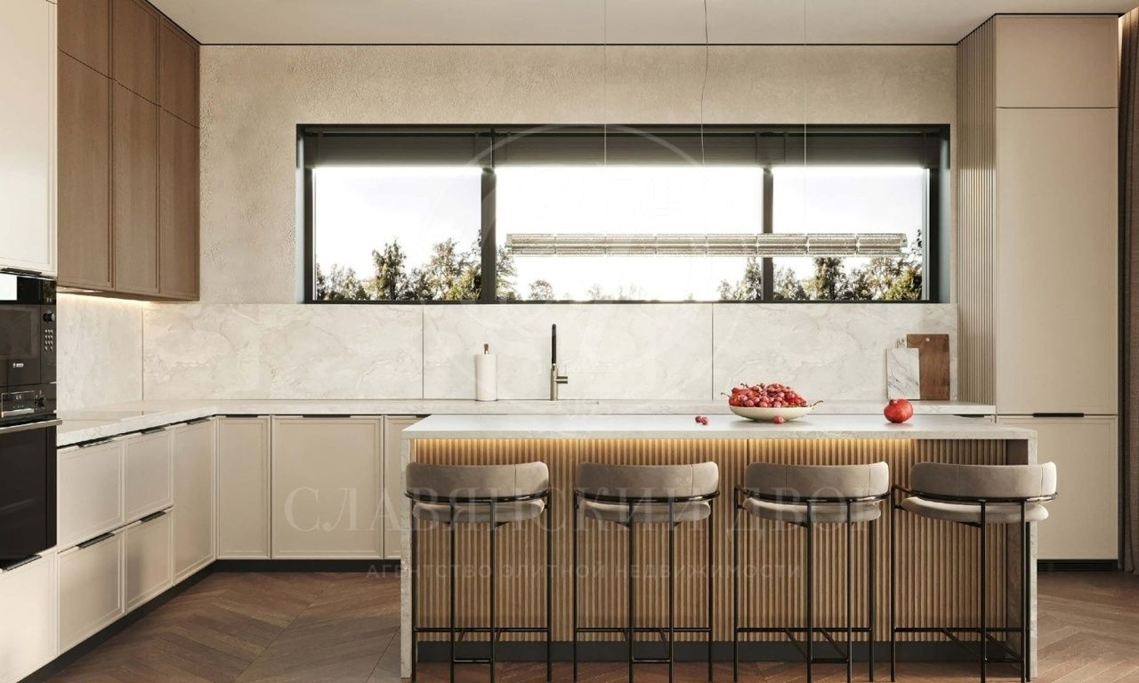 На продажу предлагается новый современный дом 497 кв.м. «под ключ» на участке 11 соток в КП Горки-8. Приватное расположение на тупиковой улице в поселке. Дом подойдет для большой семьи — планировка предполагает 5 спален.