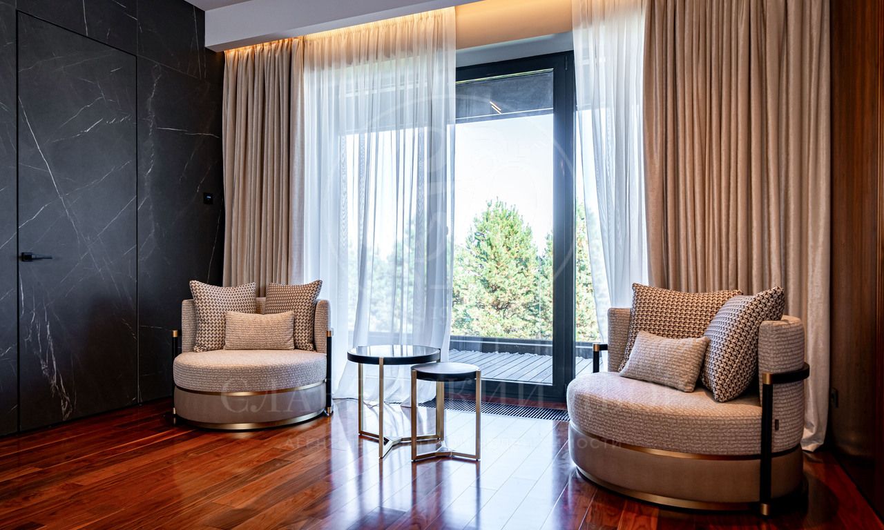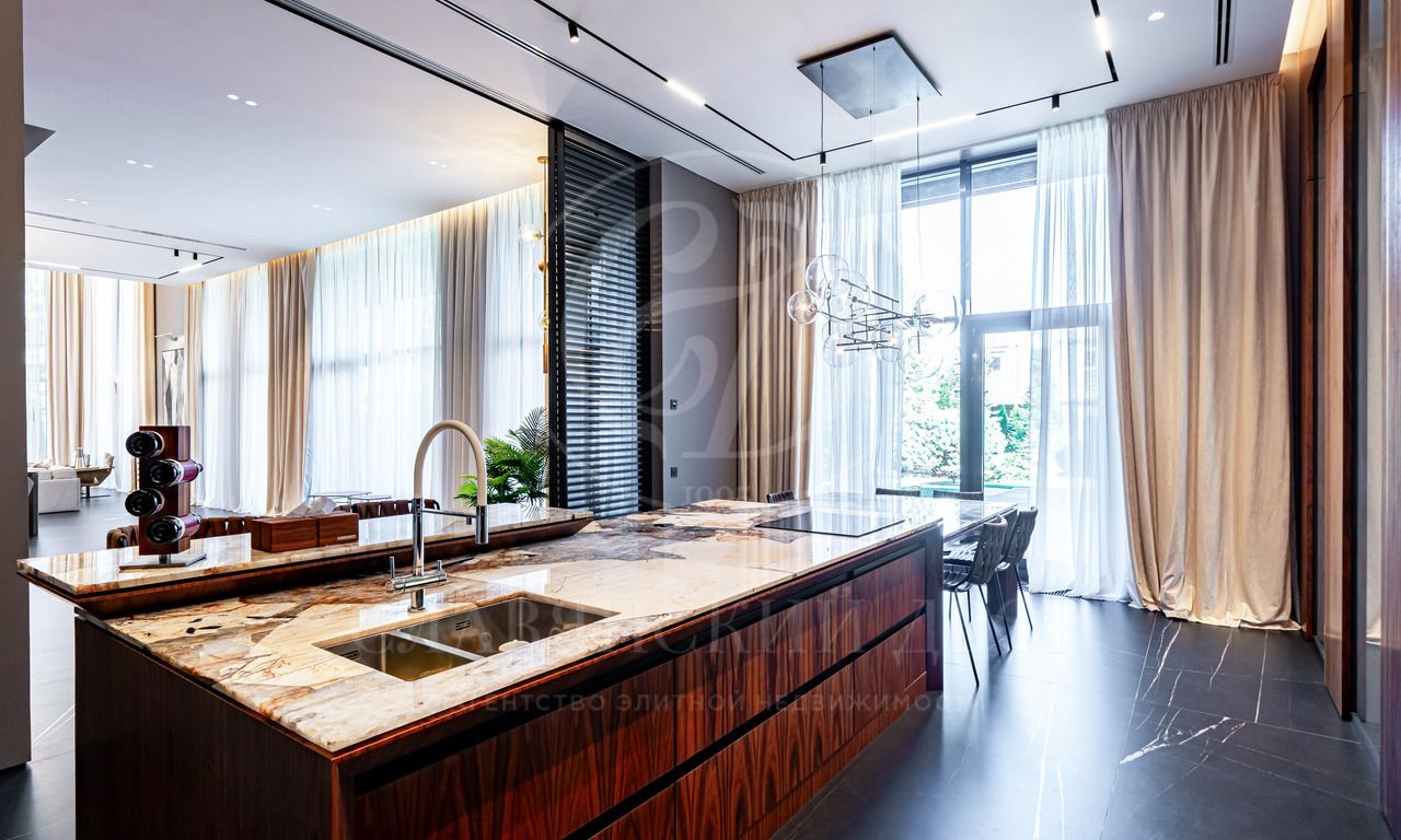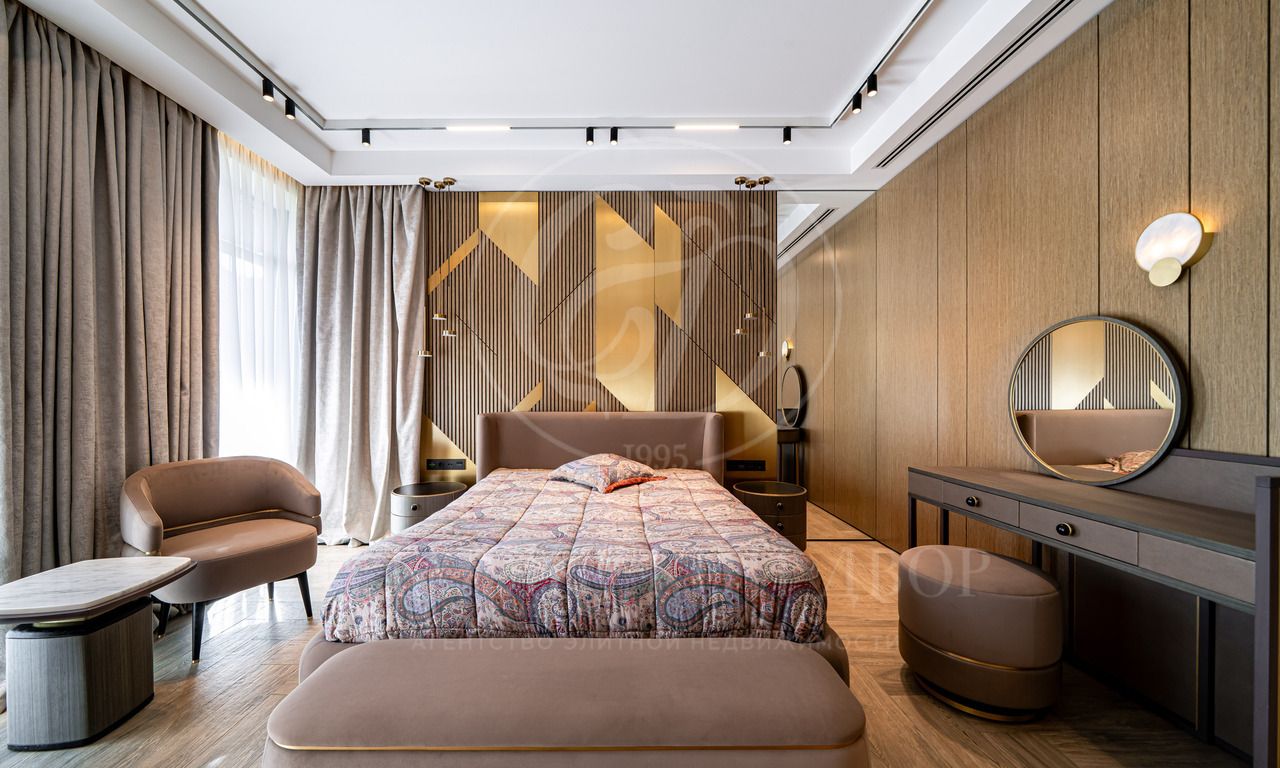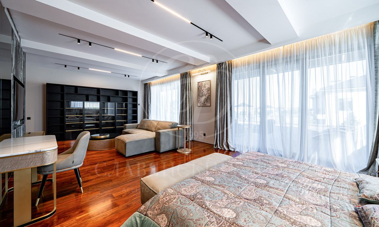 Дом площадью 745 кв.м. с 6 спальнями расположен на видовом участке 22,2 сотки в одном из самых престижных поселков «Ренессанс Парк» на Новой Риги.