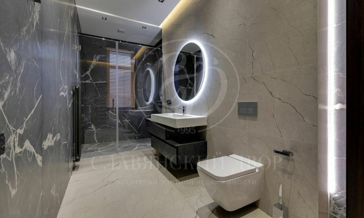 • Второй этаж: мастер-спальня с с/у большой душевой и джакузи, гостевая спальня, детская спальня, гардеробная, с/у с ванной и душевой кабиной, с/у с душевой.