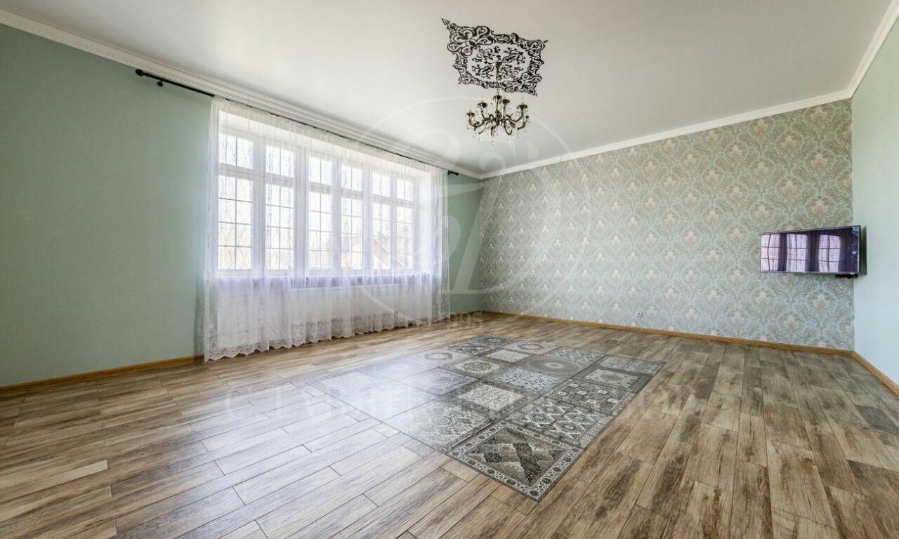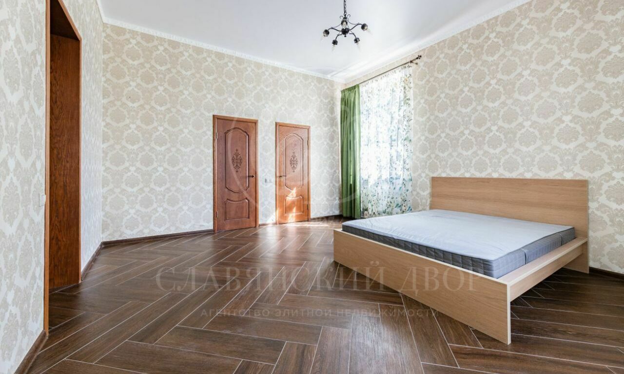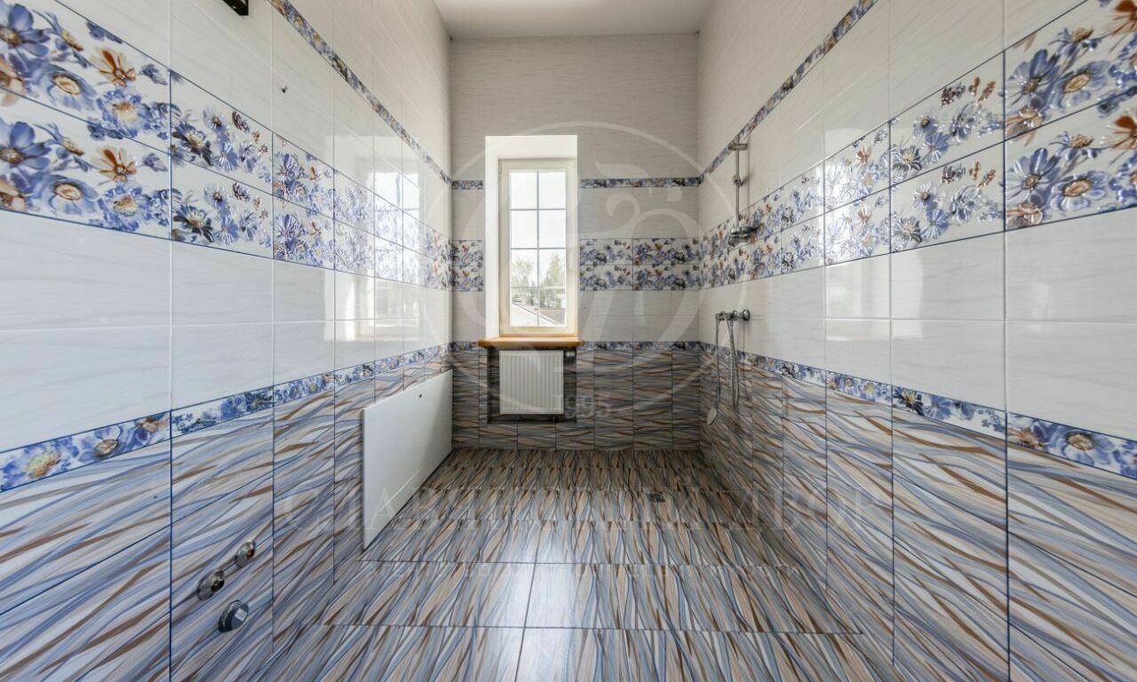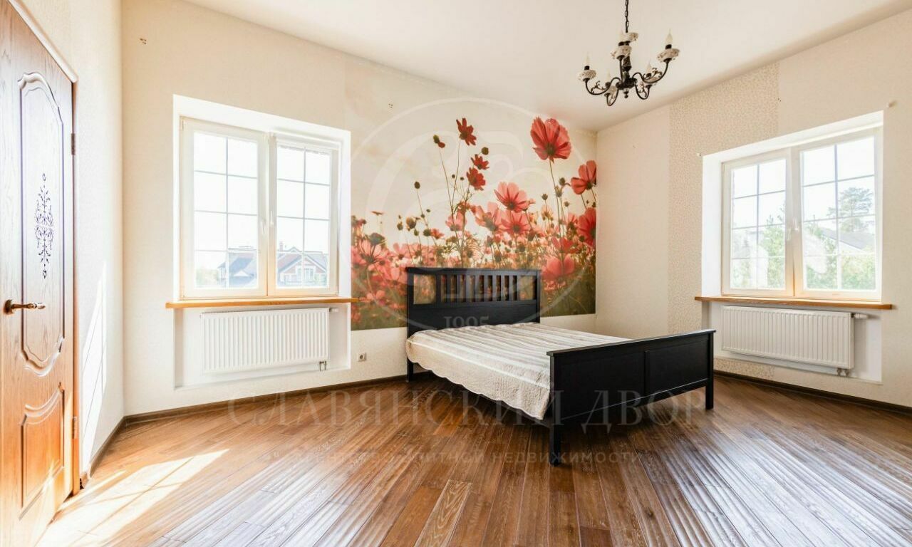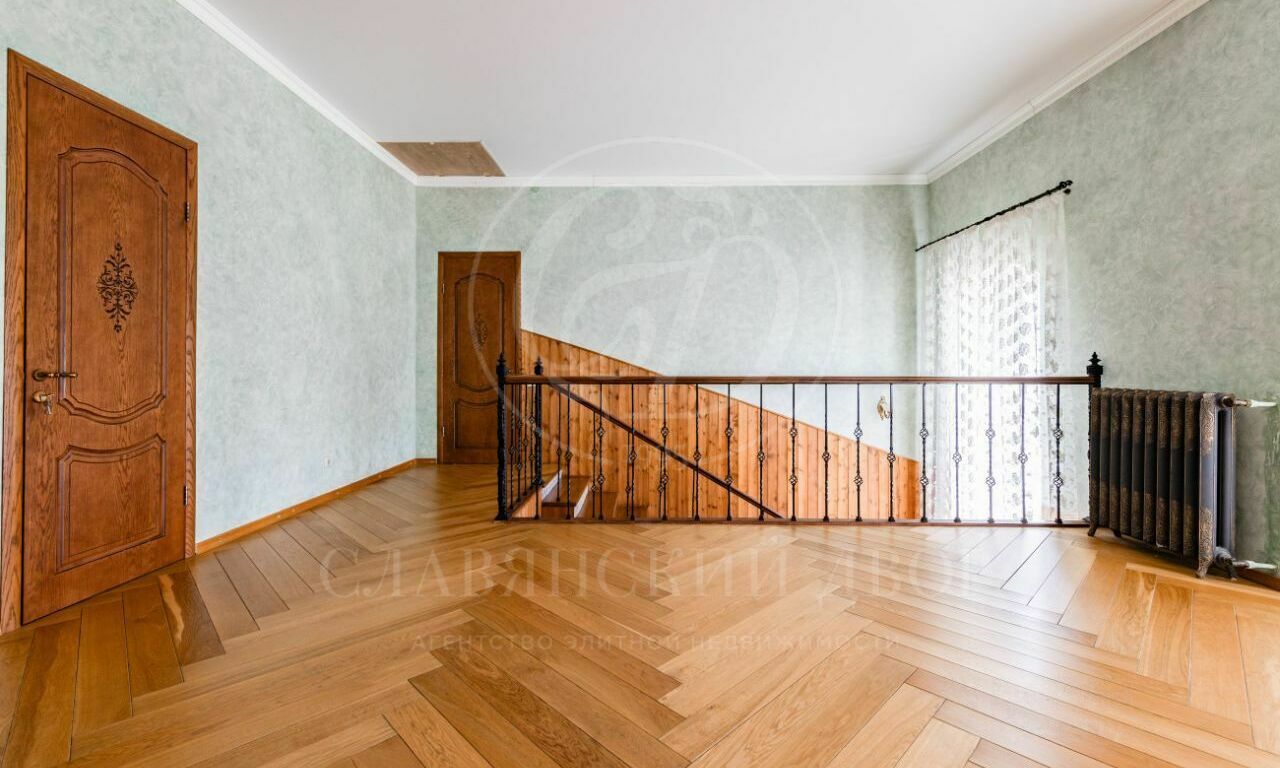 4 мастер‑спальни (каждая с санузлом, душем и гардеробной). Отделка: керамогранит (1‑й этаж), дубовый паркет и лиственница (2‑й этаж). Классическая дубовая лестница с коваными перилами; двери, окна и подоконники — из натурального дерева.