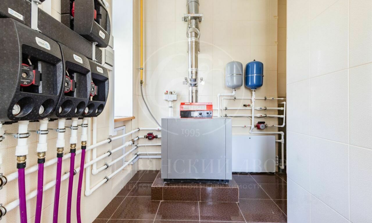 Коммуникации: газ (котёл Viessmann Vitogas 100‑F, 60 кВт), электричество, водопровод, канализация.
