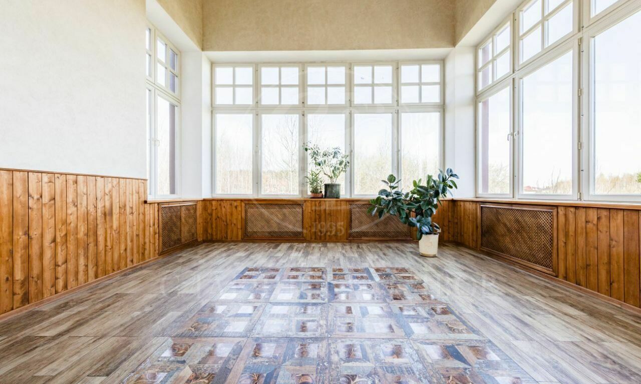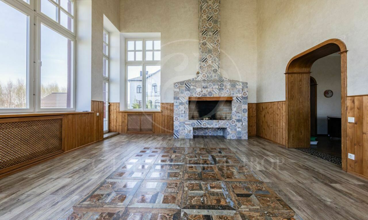 Просторный дом из красного кирпича: потолки — 3,3 м (в каминном зале — 7 м), панорамные окна, пол с подогревом.