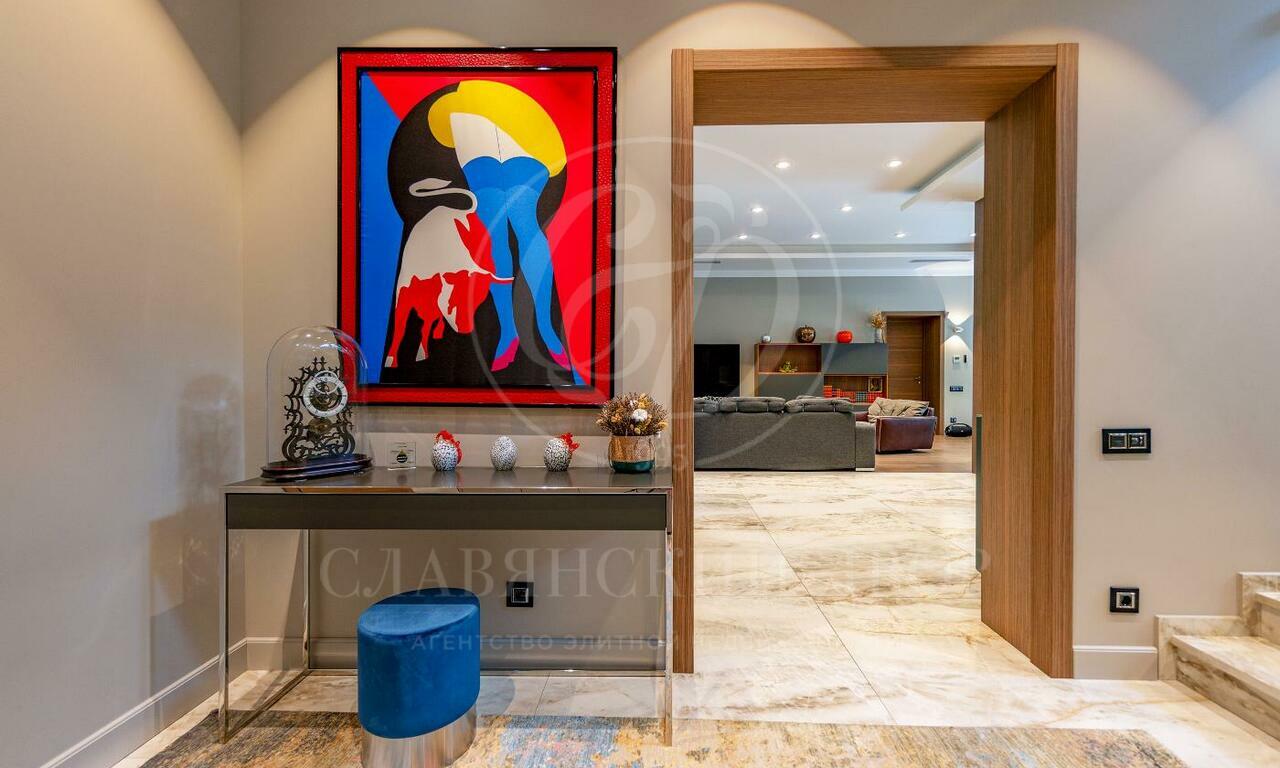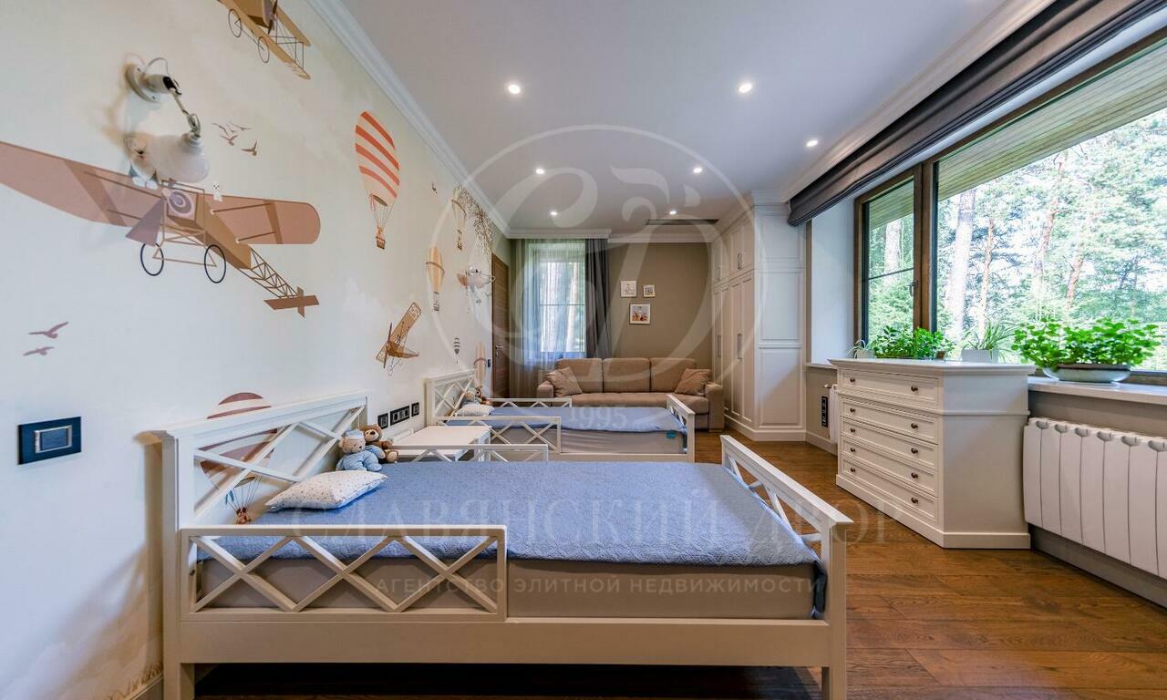 2 этаж: спальня родителей, две гардеробные зоны, ванная комната, гостевая спальня, ванная комната, детский блок спальня, комната для няни с душем, кухня для детей, собственный вход с первого этажа.