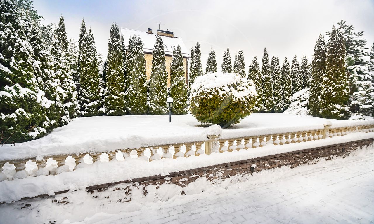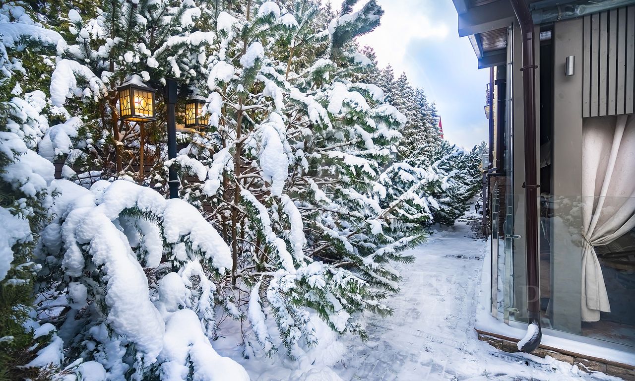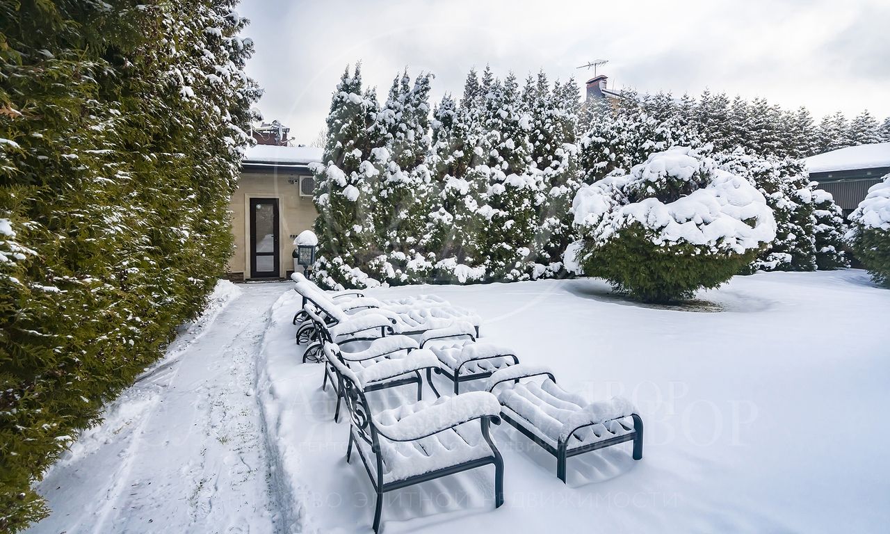 На участке: 200 деревьев крупномеров, дорожки, уличное освещение, скамейки, шезлонги