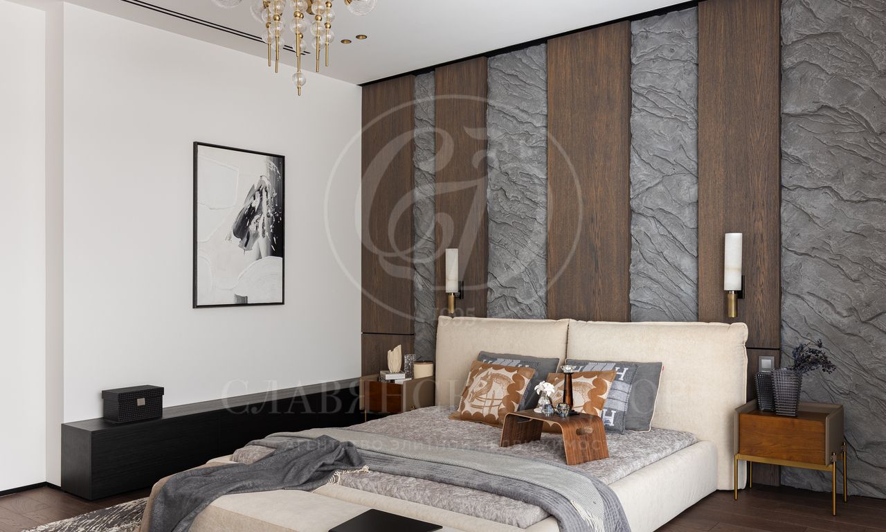 • 4 блока спален (спальня+гардеробная+с/у).Мастер блок с 2-мя гардеробными