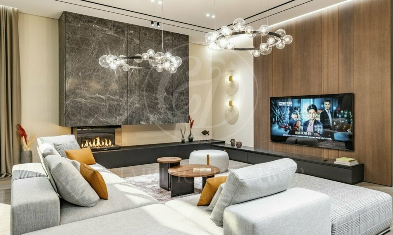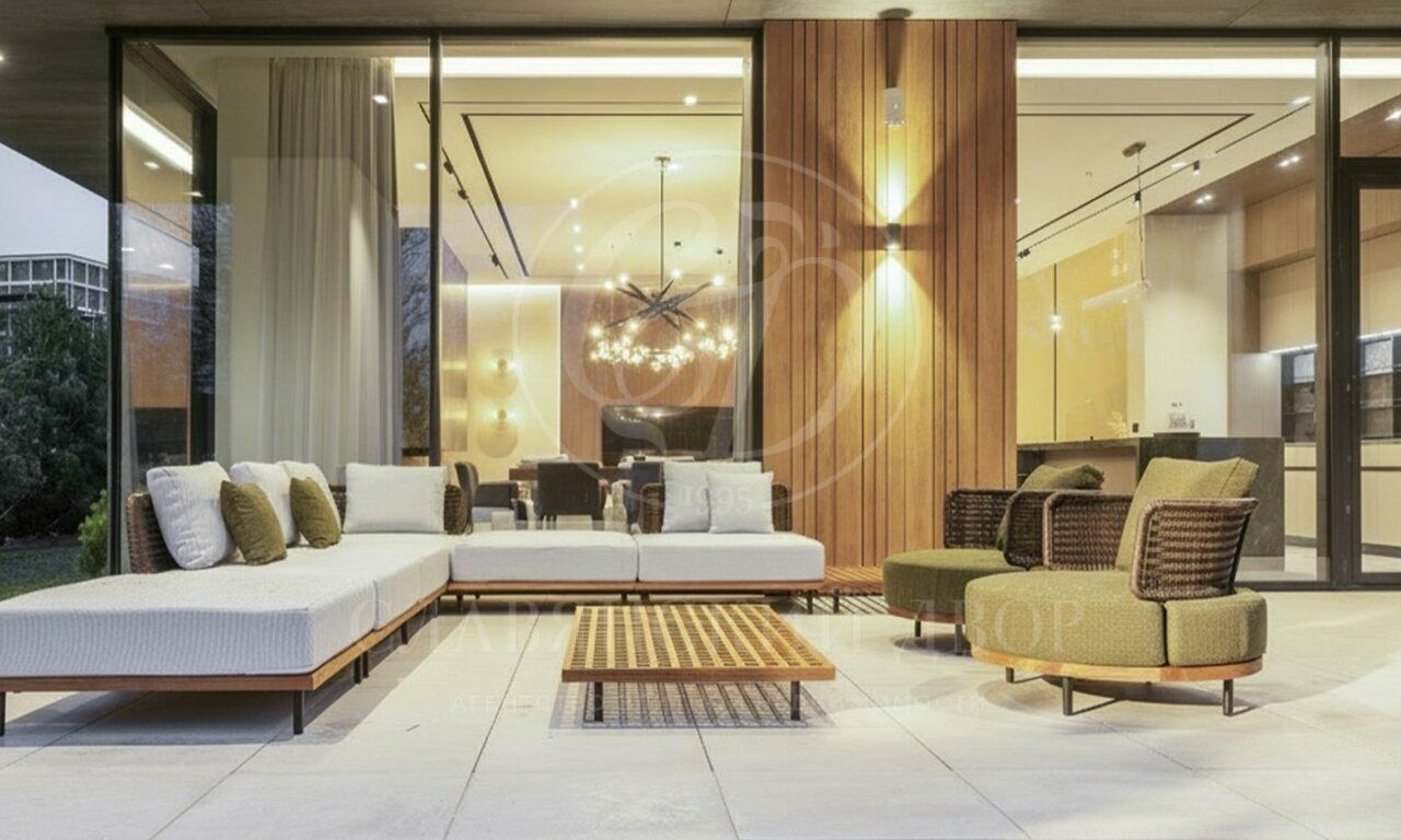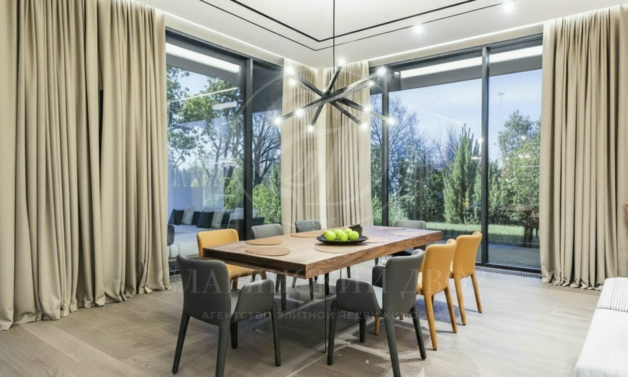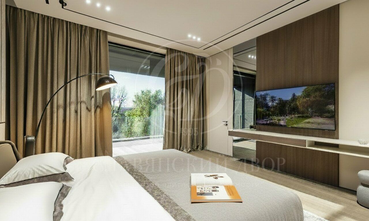 1 этаж: холл, гардеробная, гостиная-столовая-кухня с выходом на террасу, спальня с гардеробной и с/у, кладовая, постирочная, блок для персонала (спальня, кухня-гостиная, гардеробная, с/у), котельная, электрощитовая, гараж на 2 м/м