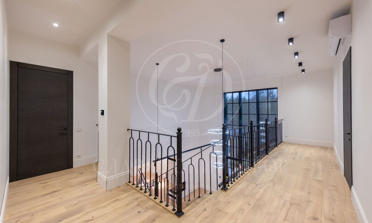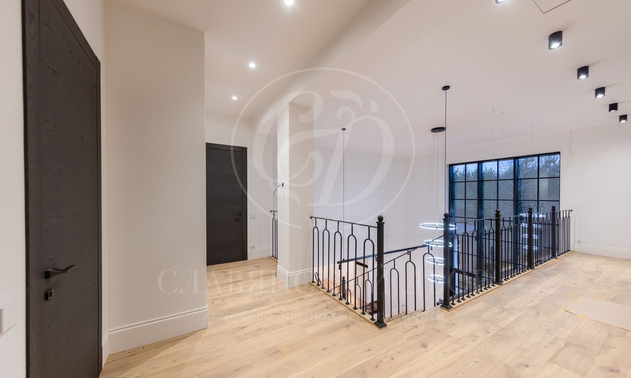 На продажу предлагается новый современный дом 650 кв.м. в состоянии под ключ без мебели на прилесном участке 17,5 соток в КП «Европа-1». Функциональная планировка: 5 спален, 4 с/у, блок для персонала, гостевой дом с баней.