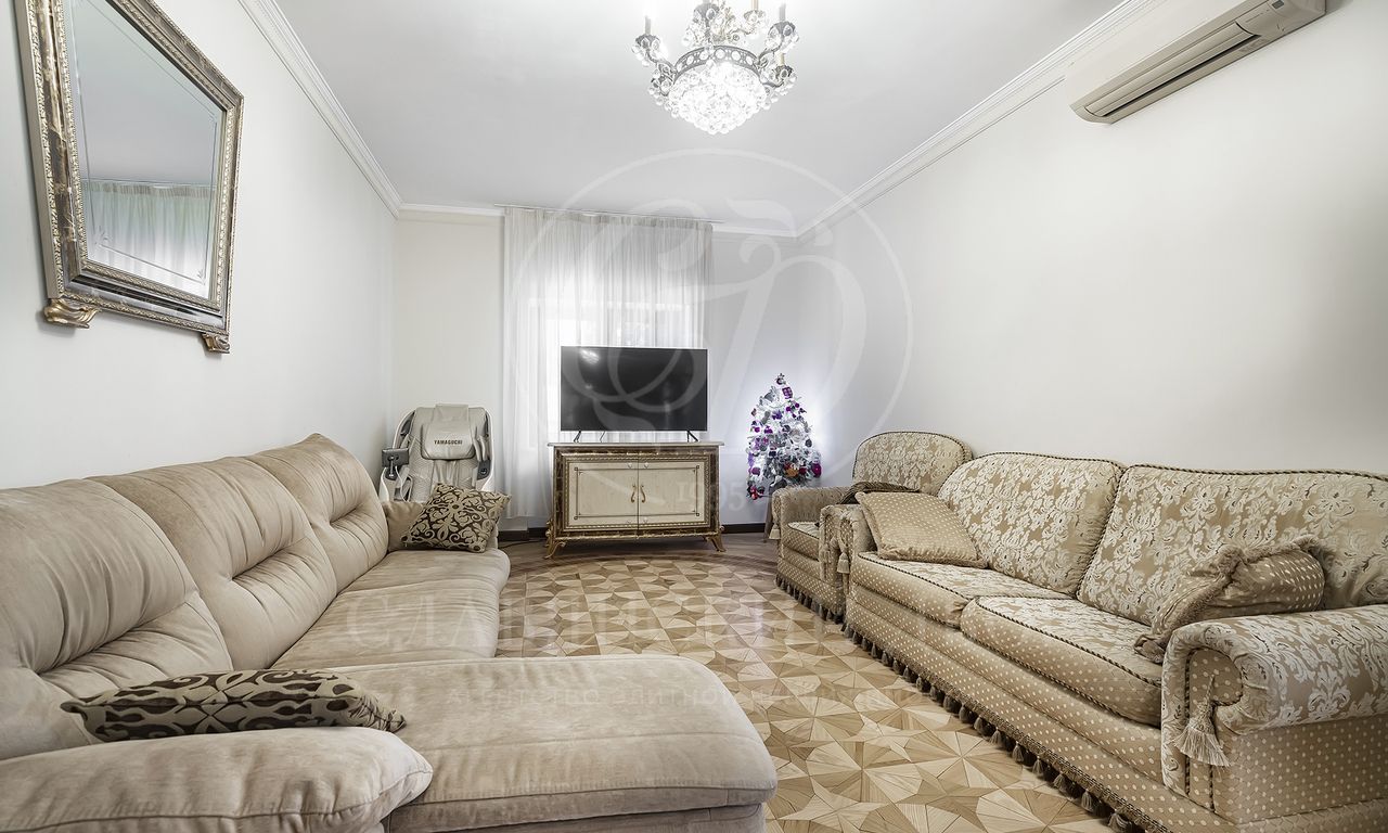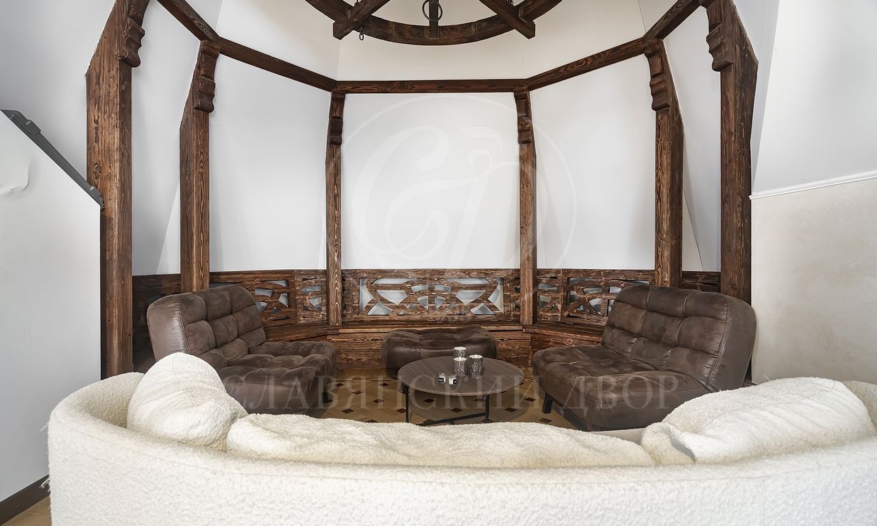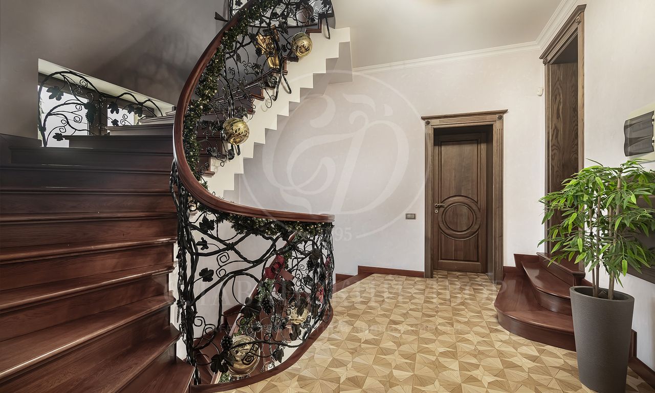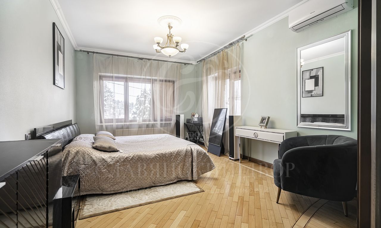 Особенности и преимущества дома: высококачественный ремонт, эксклюзивный паркет ручной работы, санузлы оснащены итальянской сантехникой, во всех санузлах — тёплые полы, над гаражом — отдельное помещение для персонала с входом, мебелью, санузлом и полноценной кухней.