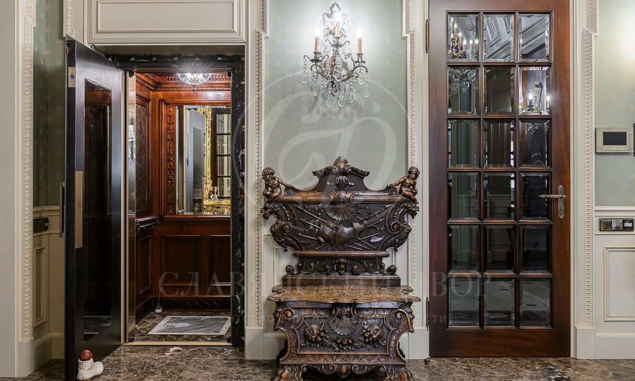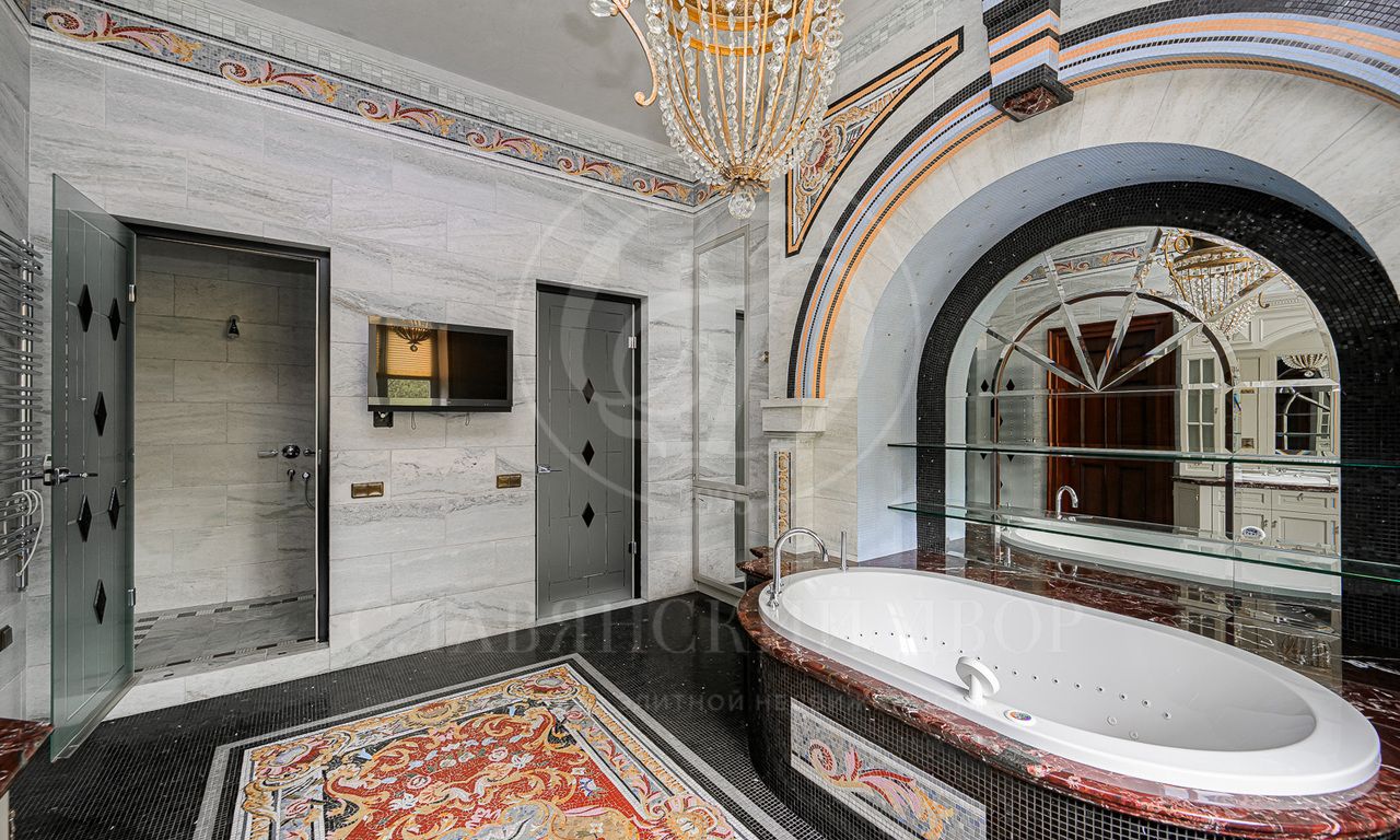 На продажу предлагается изысканный особняк 1250 кв.м. в поселке Тайм-2. В отделке интерьера использовались ценные породы дерева и мрамора. В доме есть SPA-зона с бассейном, лифт, рабочая кухня, много систем для хранения.