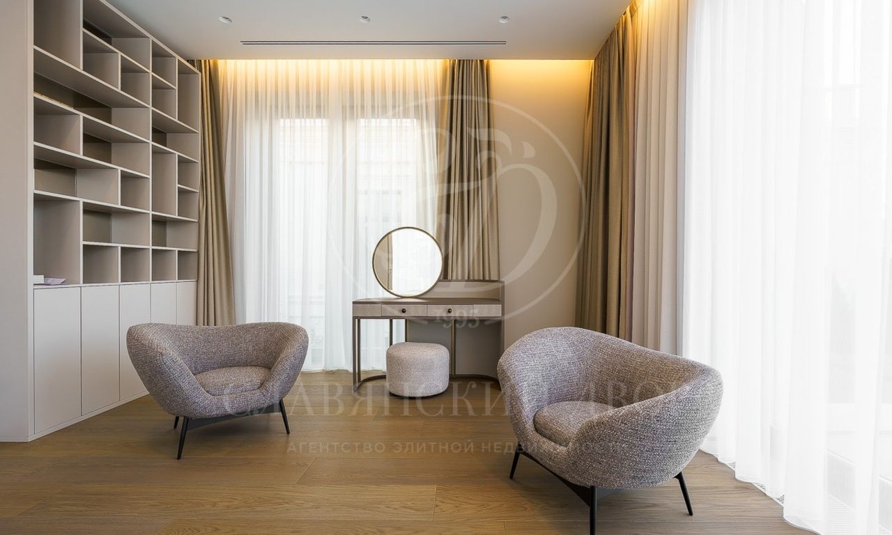 Второй этаж: холл, лифт, мастер-спальня с с/у и гардеробной, гардеробная, с/у, кабинет, детская игровая, 3 спальни с гардеробной и с/у, терраса;