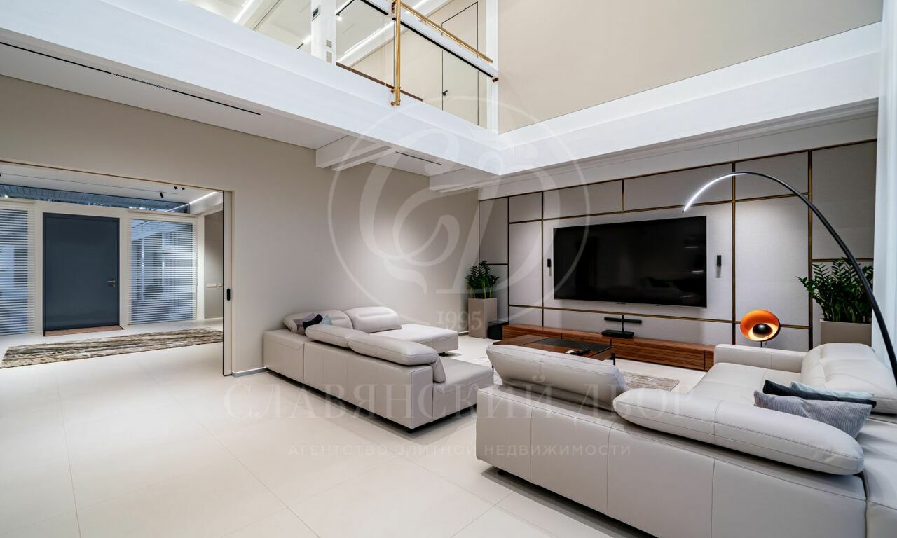 Первый этаж: холл, гостиная со вторым светом и выходом на террасу, кухня-столовая зона, гостевая спальня, SPA-зона, фитнес-зона, 4 с/у, гардеробная, прачечная, техническое помещение, блок персонала, гараж.