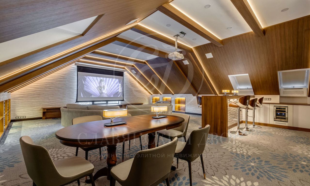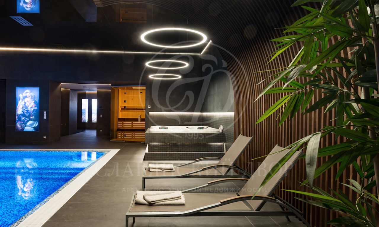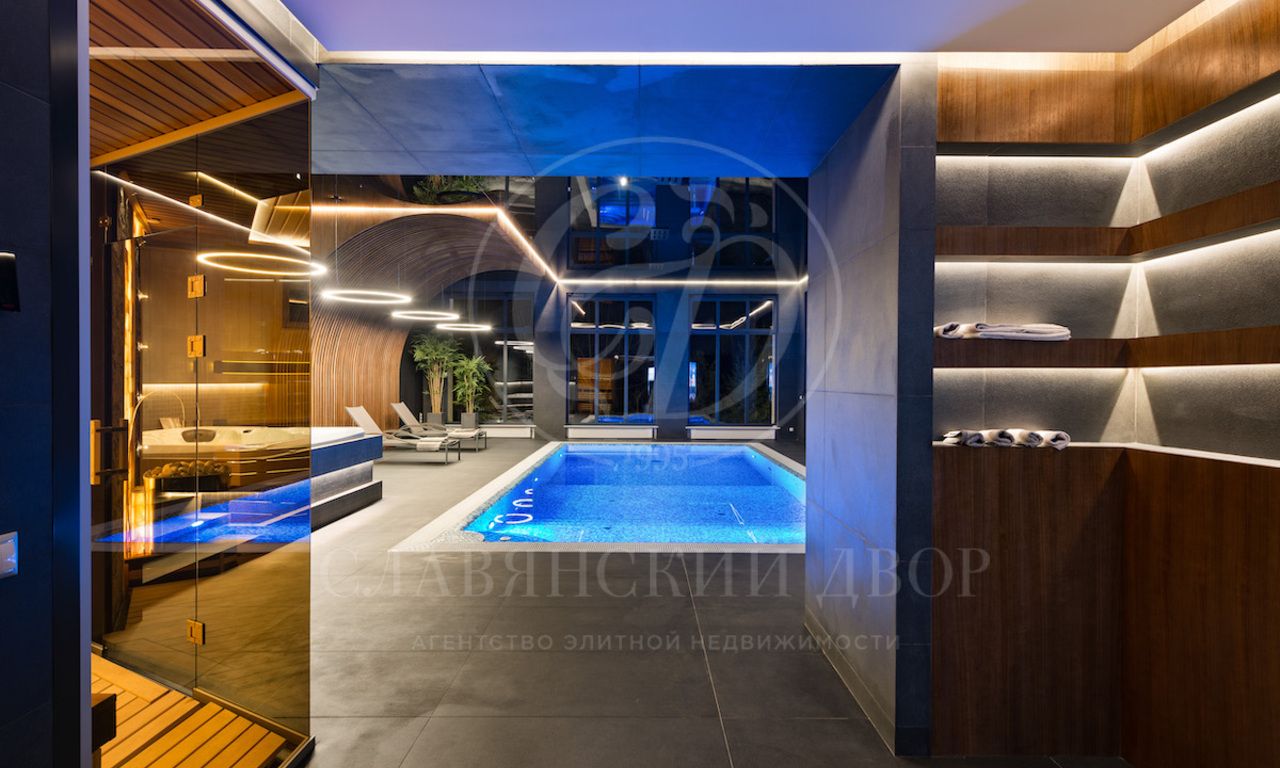 На продажу предлагается стильный дом с бассейном в поселке «Клуб 2071». Отличная функциональная планировка: просторная гостиная с камином, 2 кабинета, бассейн с сауной и хаммамом, лифт, кинозал, 5 спален. В отделке использованы дорогие натуральные материалы.