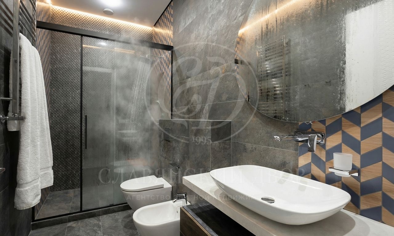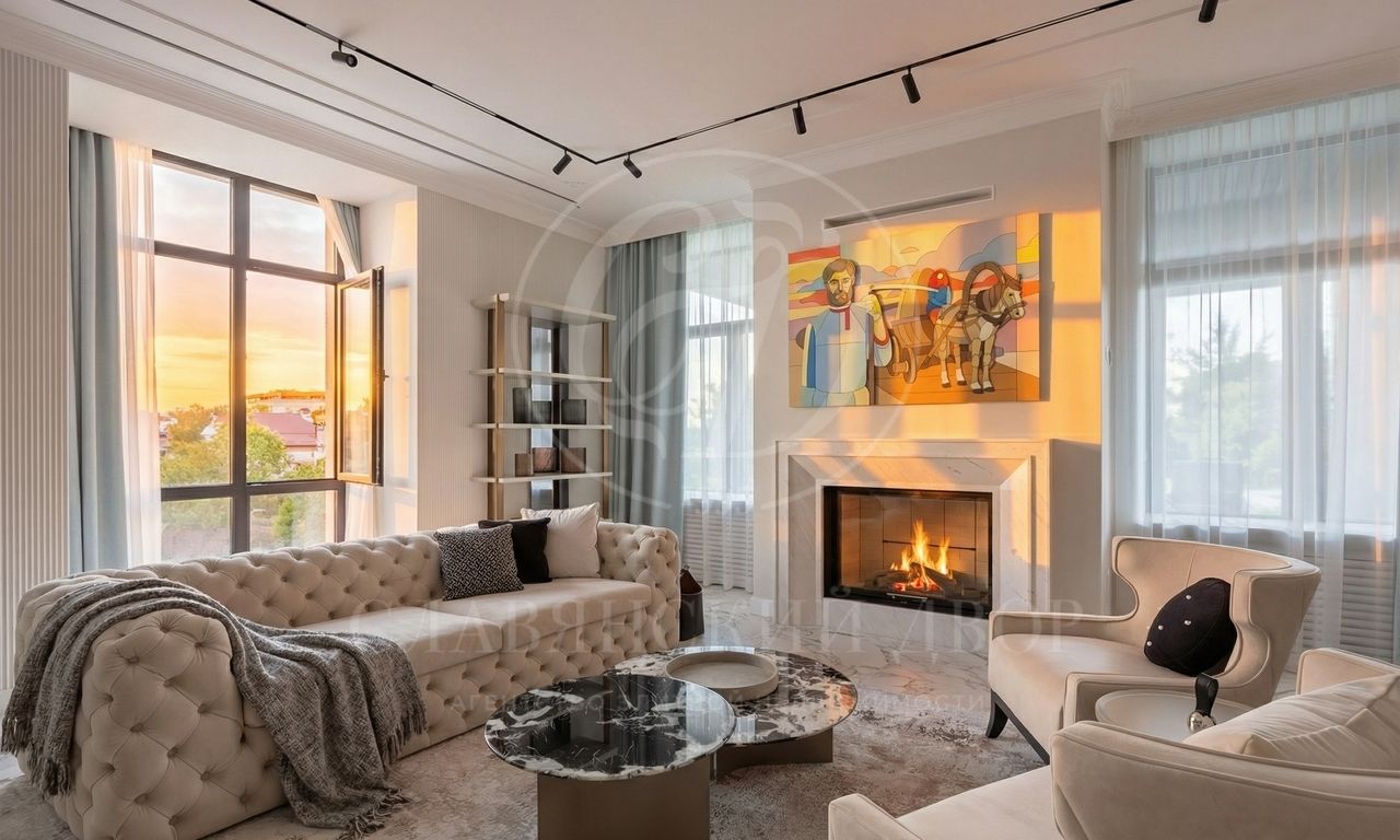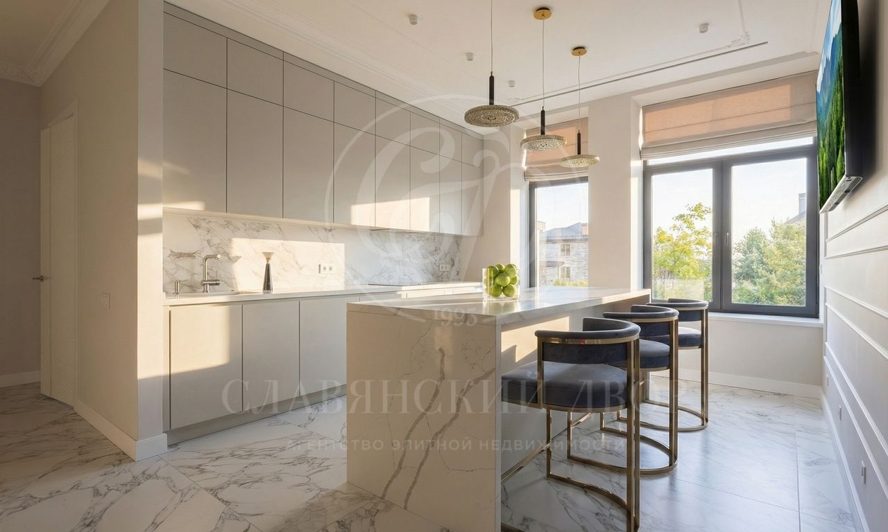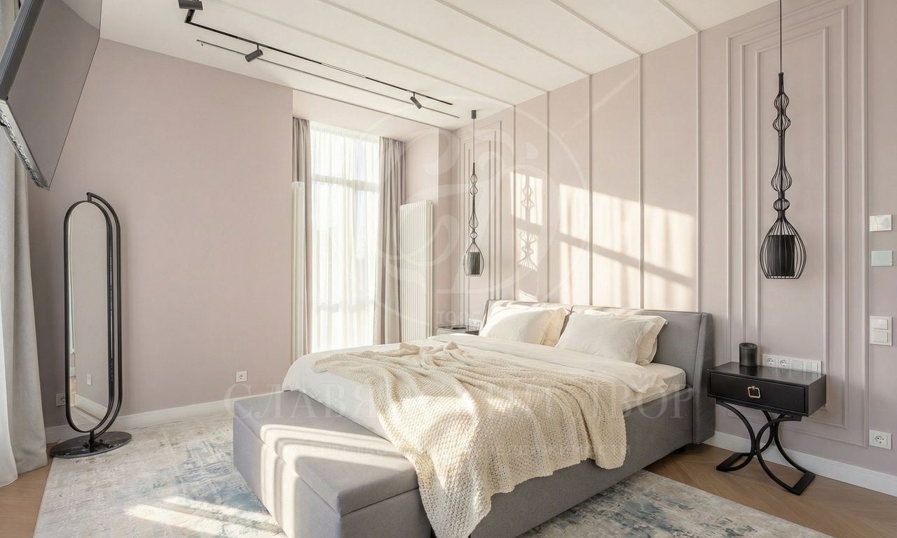 Интерьеры, выдержанные в светлых тонах, отделаны с использованием керамогранита Atlas Concorde и инженерной доски Greenline 402, выложенной французской ёлочкой, а стены украшены изящными молдингами.