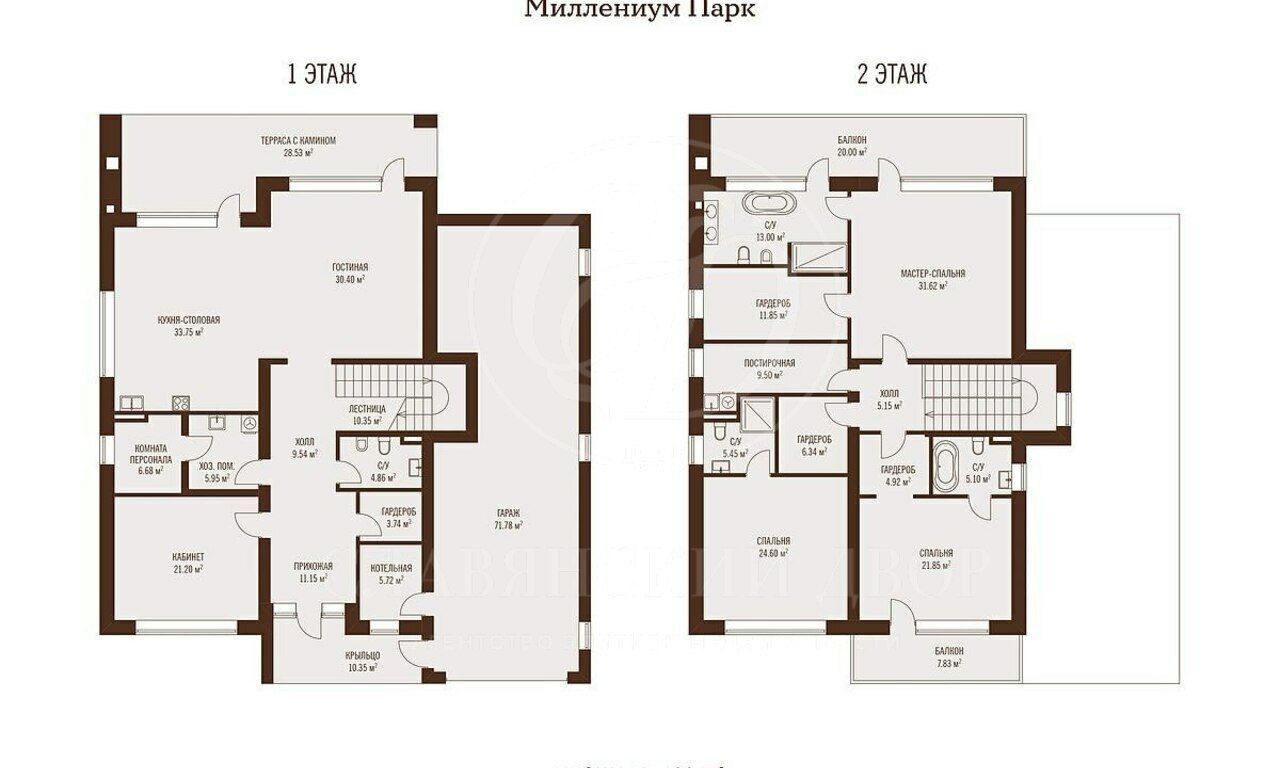 2 этаж: 3 спальни со своими санузлами и гардеробами, постирочная