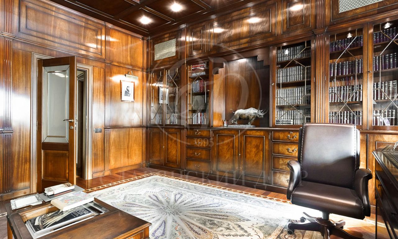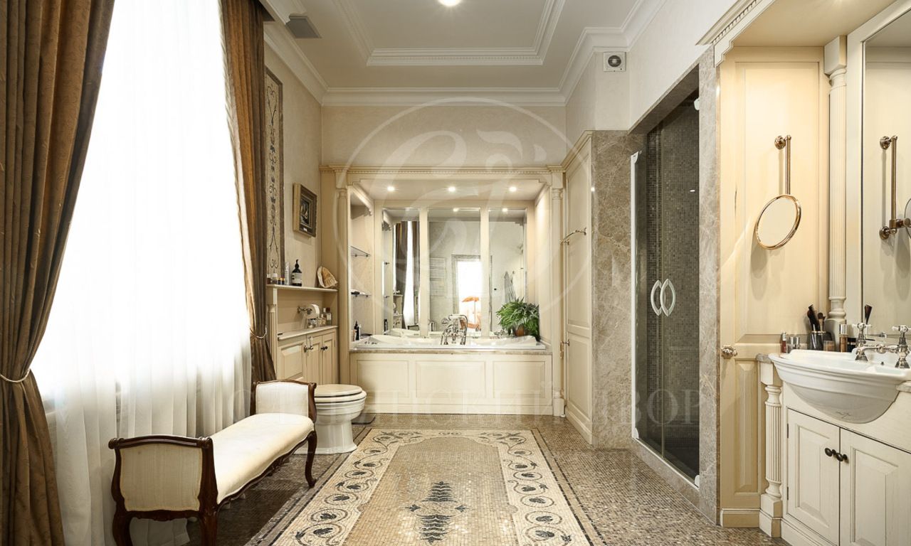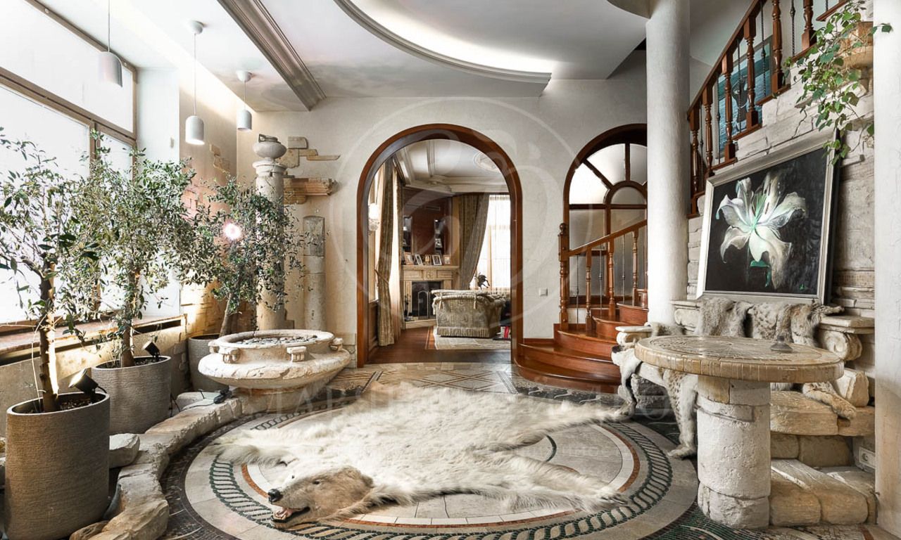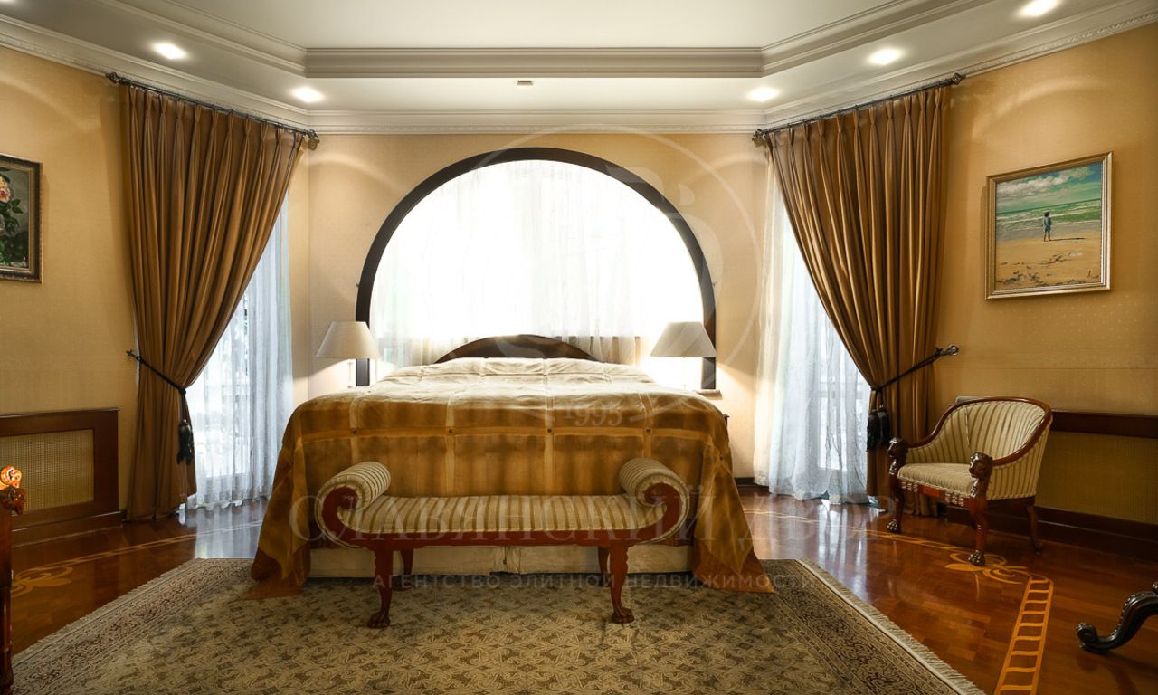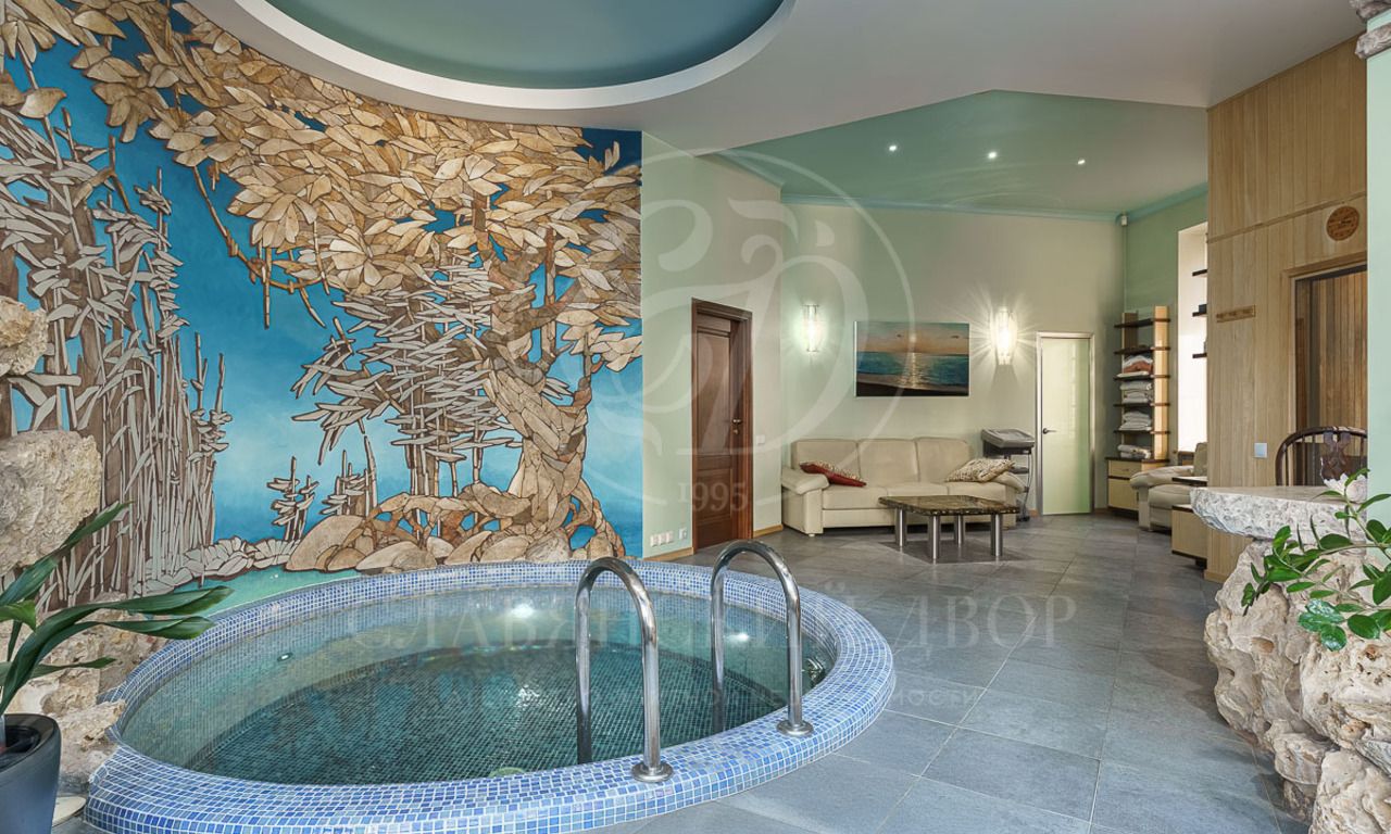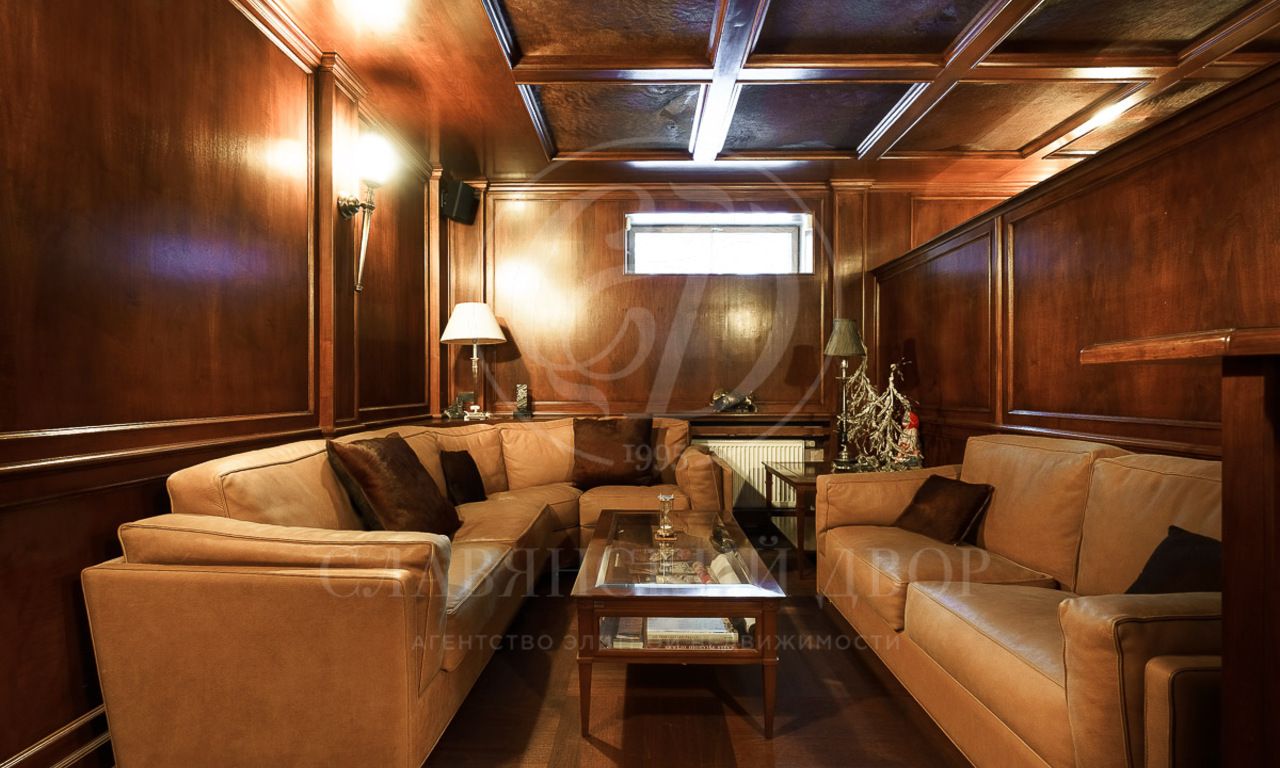 В доме 4 спальни со своими с/у и гардеробными, гостиная с камином и столовой с выходом на террасу, кухня, кабинет, бильярдная, сигарная, зона отдыха на мансардном этаже. SPA-зона с сауной, купелью, душевой.