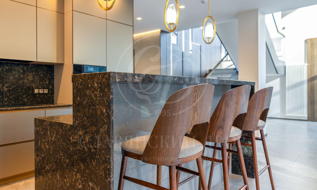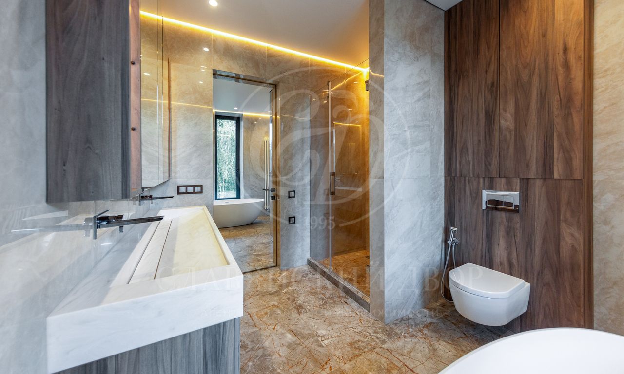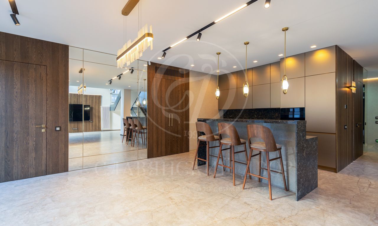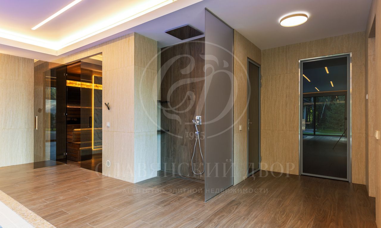 1 этаж: просторная зона холла со встроенной гардеробной, с\у с душевой, гостевая спальня, кухня-столовая-гостиная, SPA-зона: бассейн, сауна, с\у, постирочная, гараж, бойлерная, кладовая.