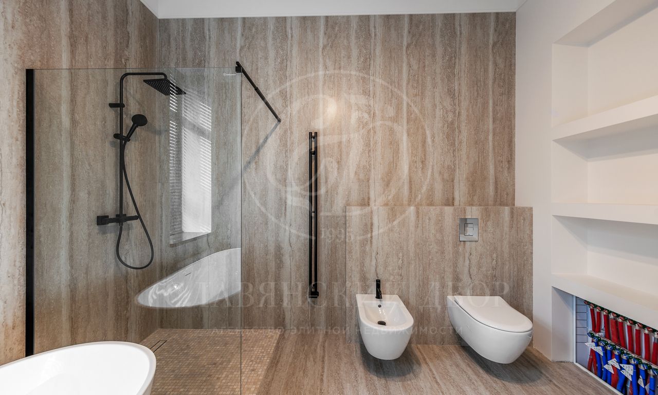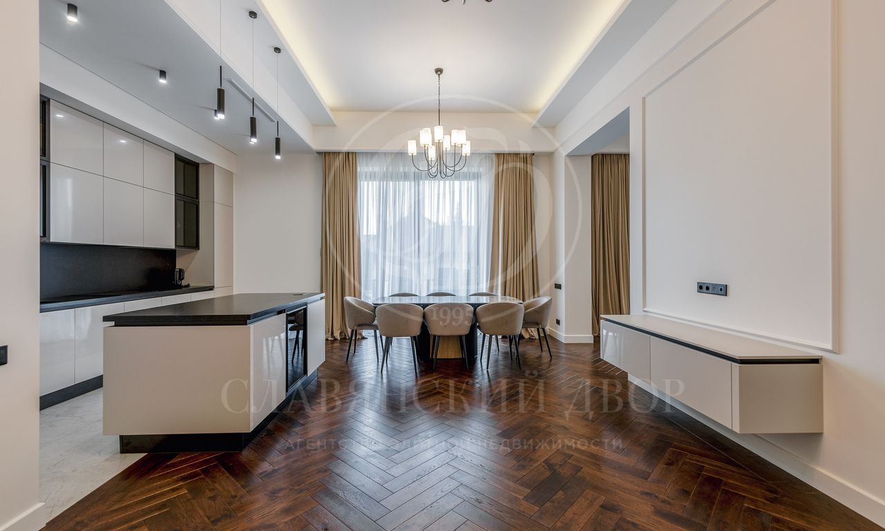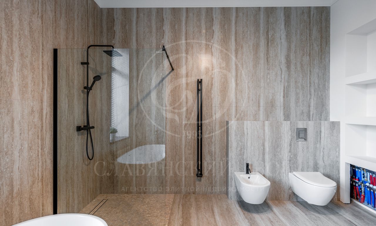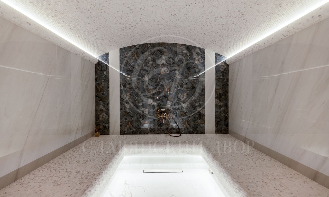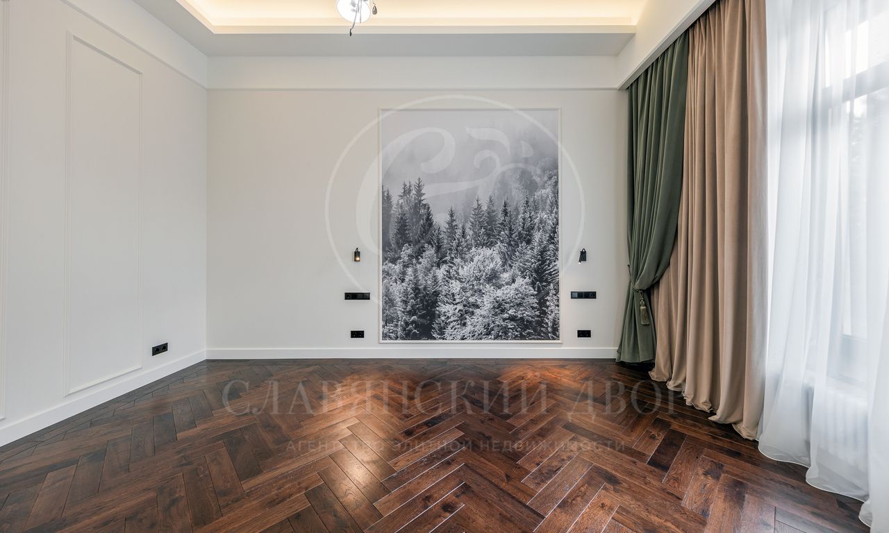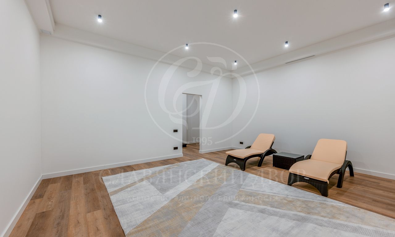 ужинов. Каминный зал — идеальное место для отдыха и встреч. Четыре спальни, каждая со своей гардеробной и санузлом. Рабочий кабинет, просторная кладовая и постирочная.