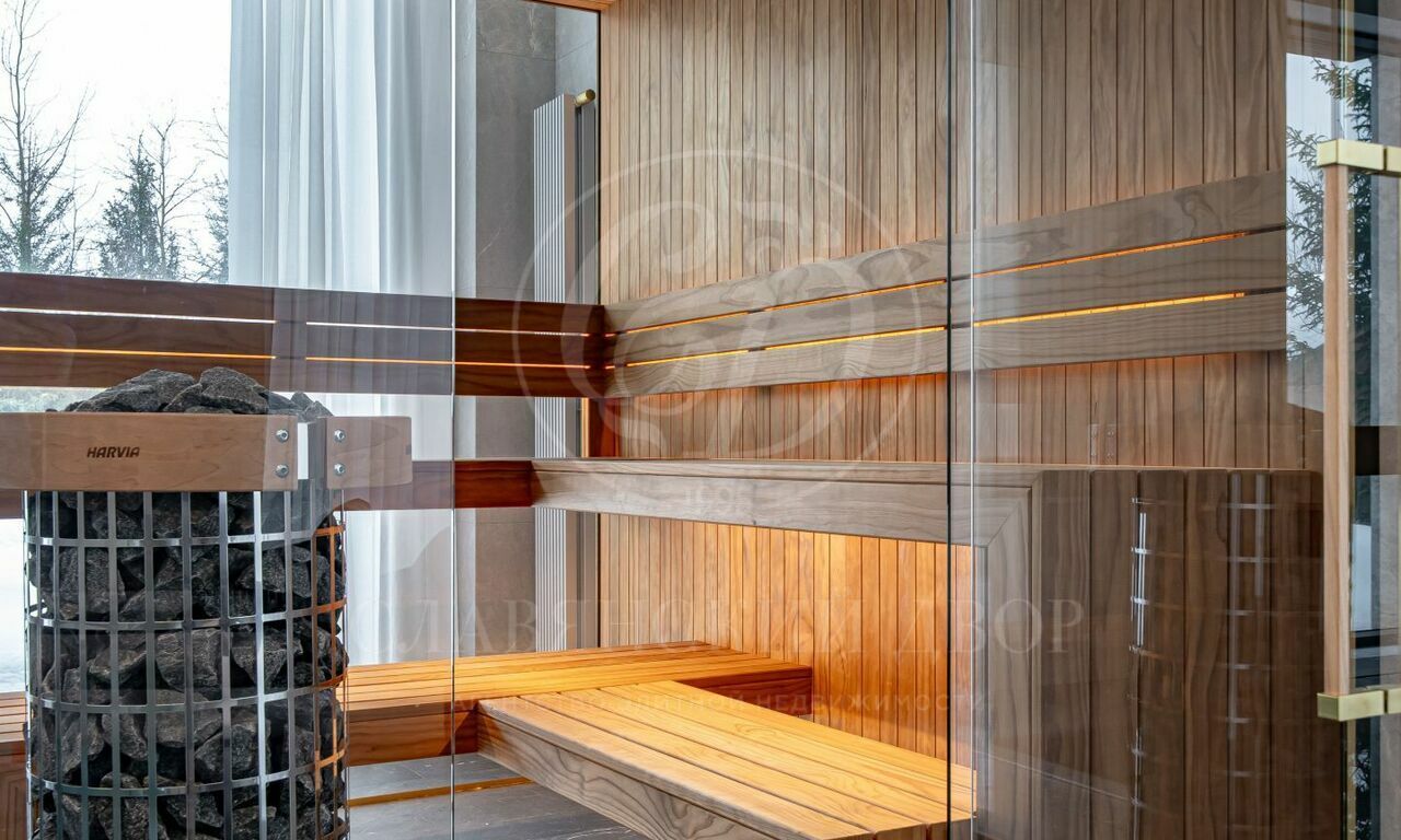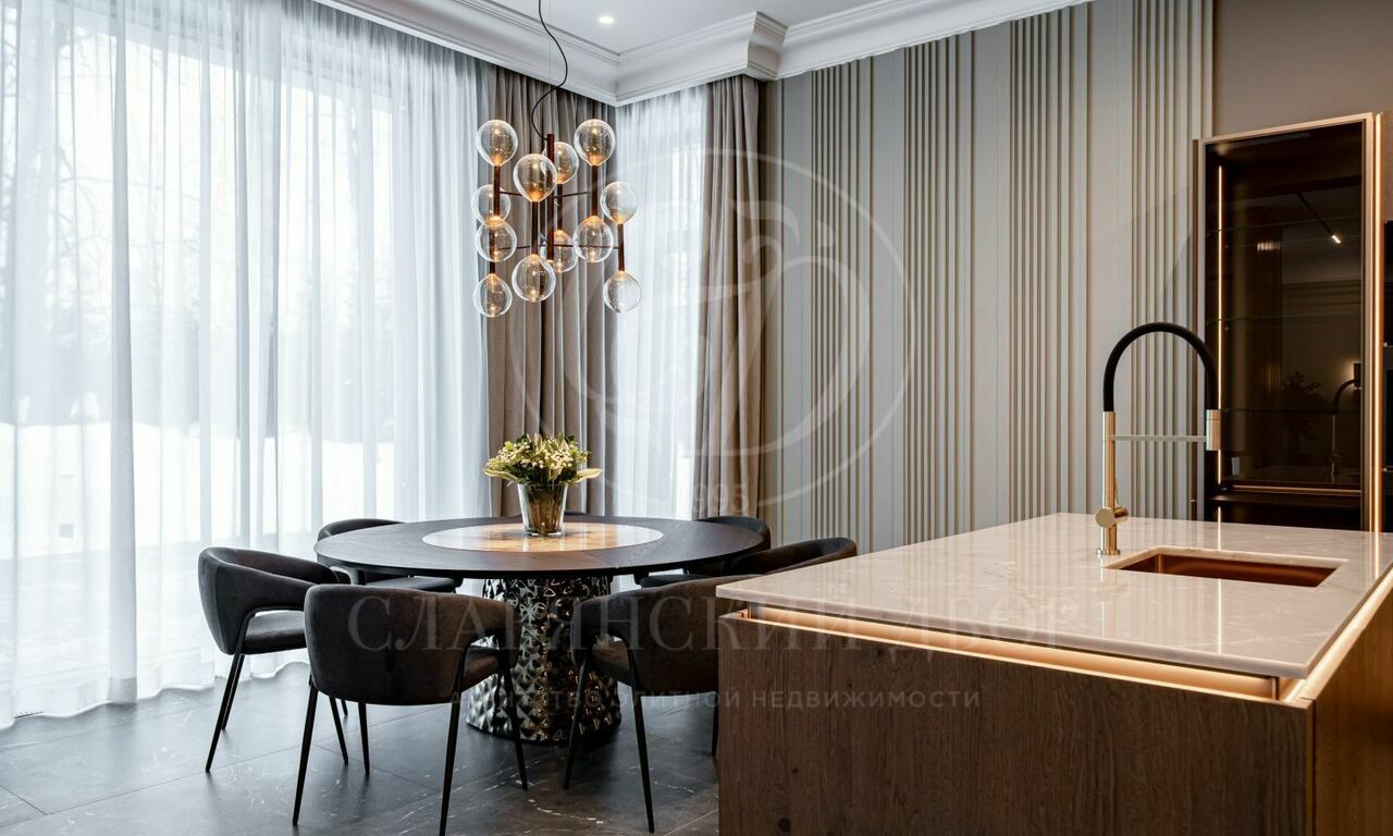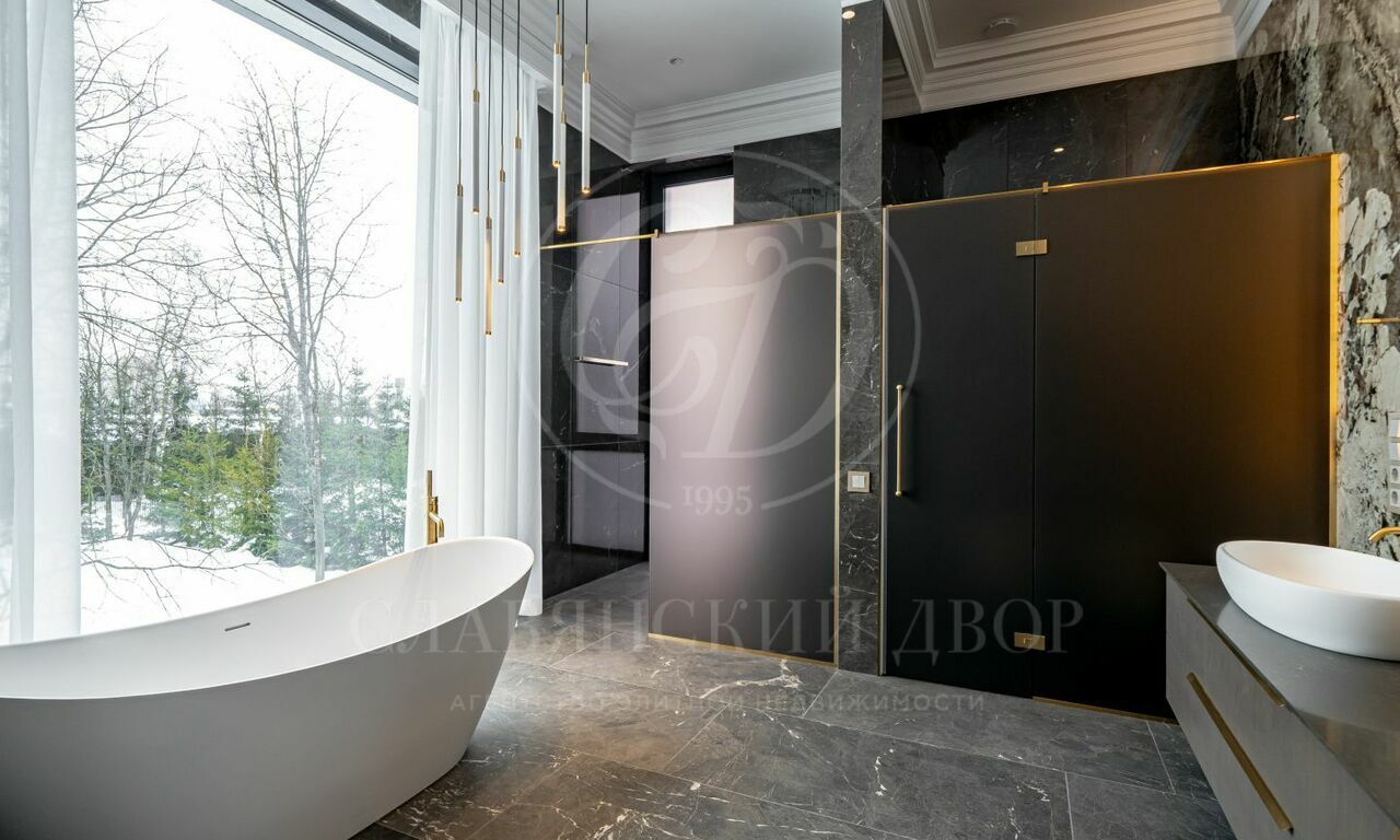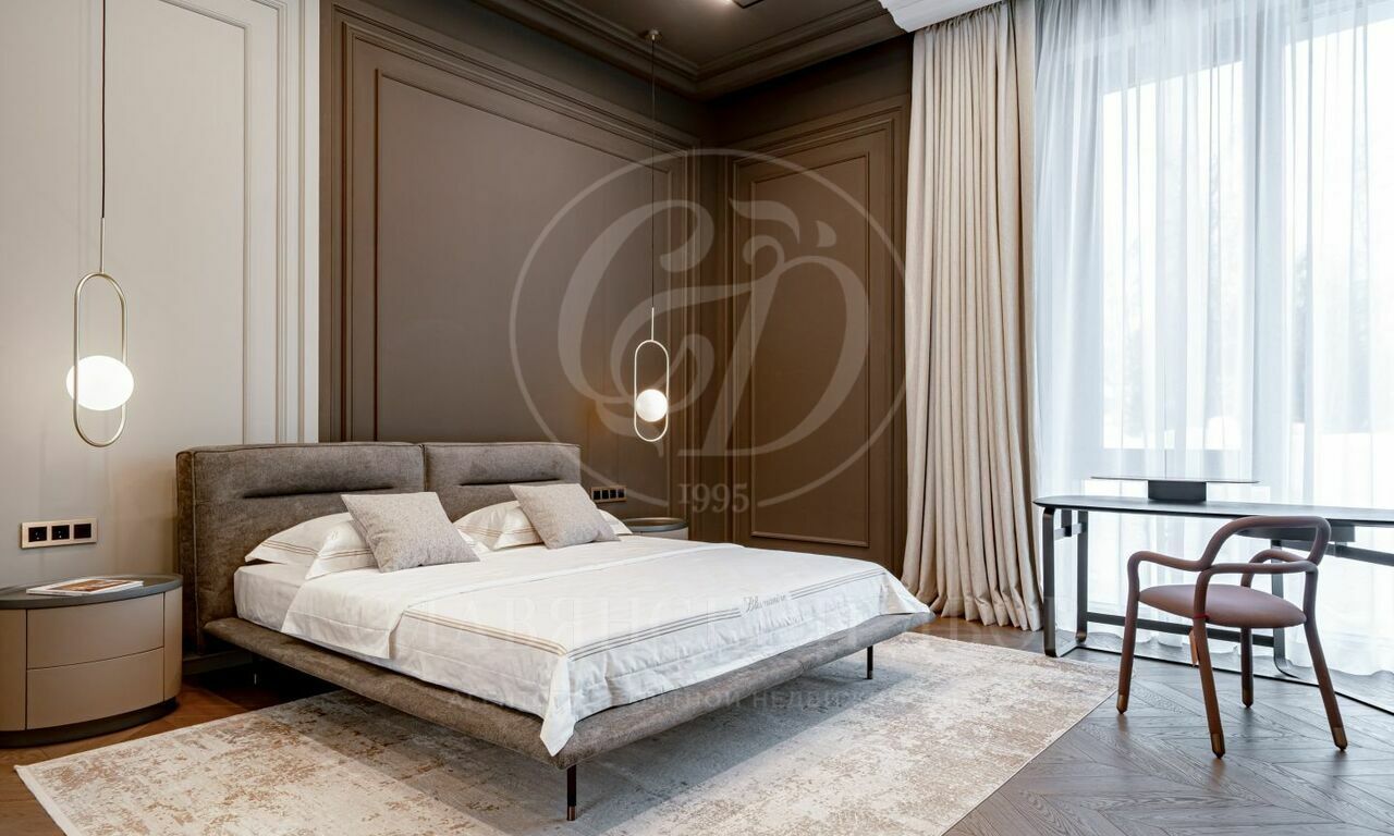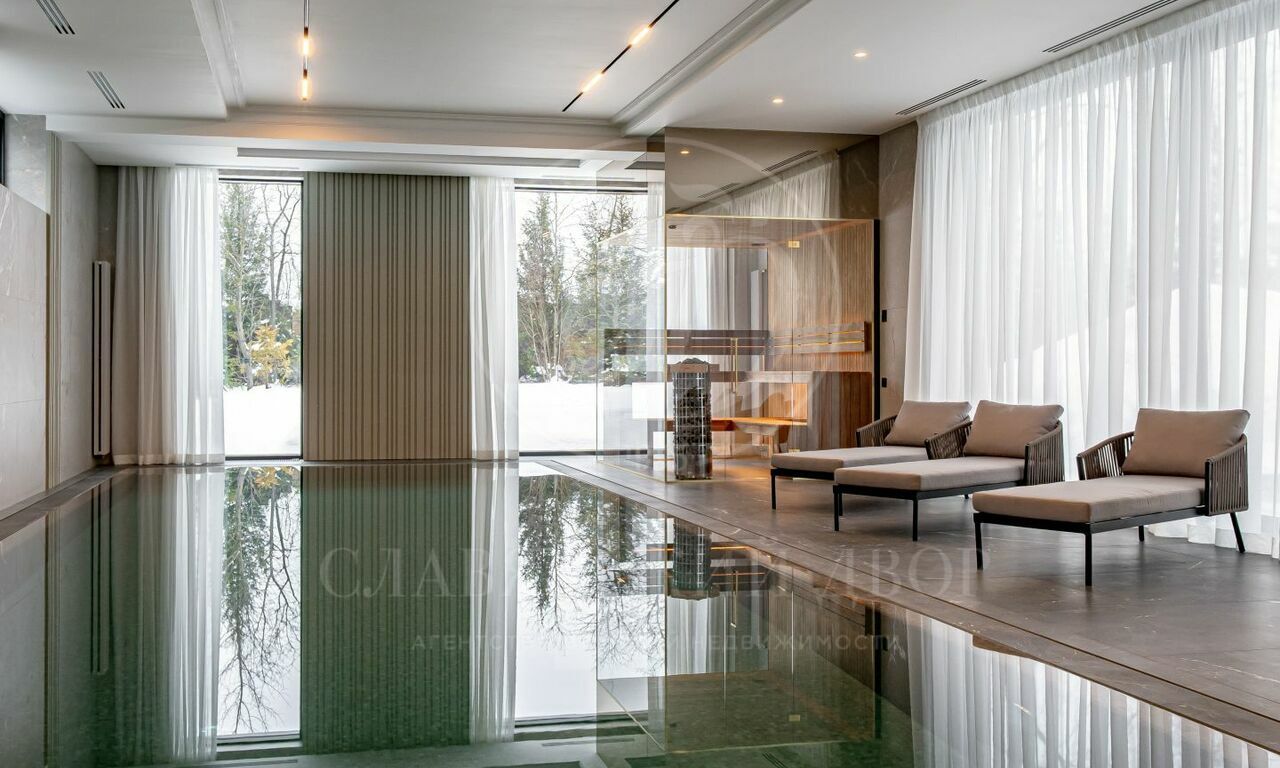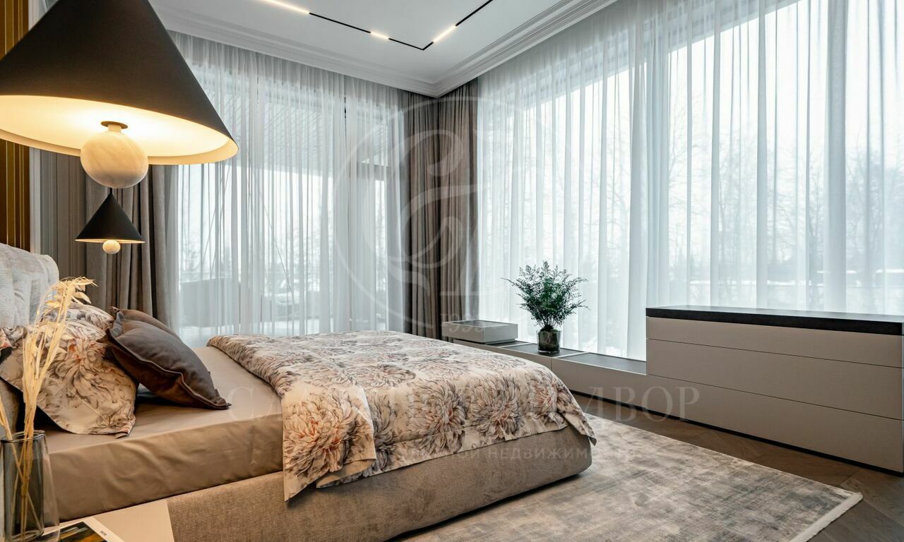 На продажу предлагается новый современный дом площадью 835 кв.м. с 5 спальнями, расположенный на видовом участке 25 соток в охраняемом коттеджном посёлке «Монтевиль» на Новой Риге. Планировочное решение дома включает: парадную кухню, рабочую кухню, гостиную с дровяным камином, 5 спален, кабинет, бассейн 12 метров, сауну, хамам, гараж на 2 м/м. Отдельно на участке расположен дом для персонала.