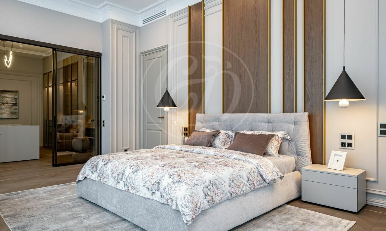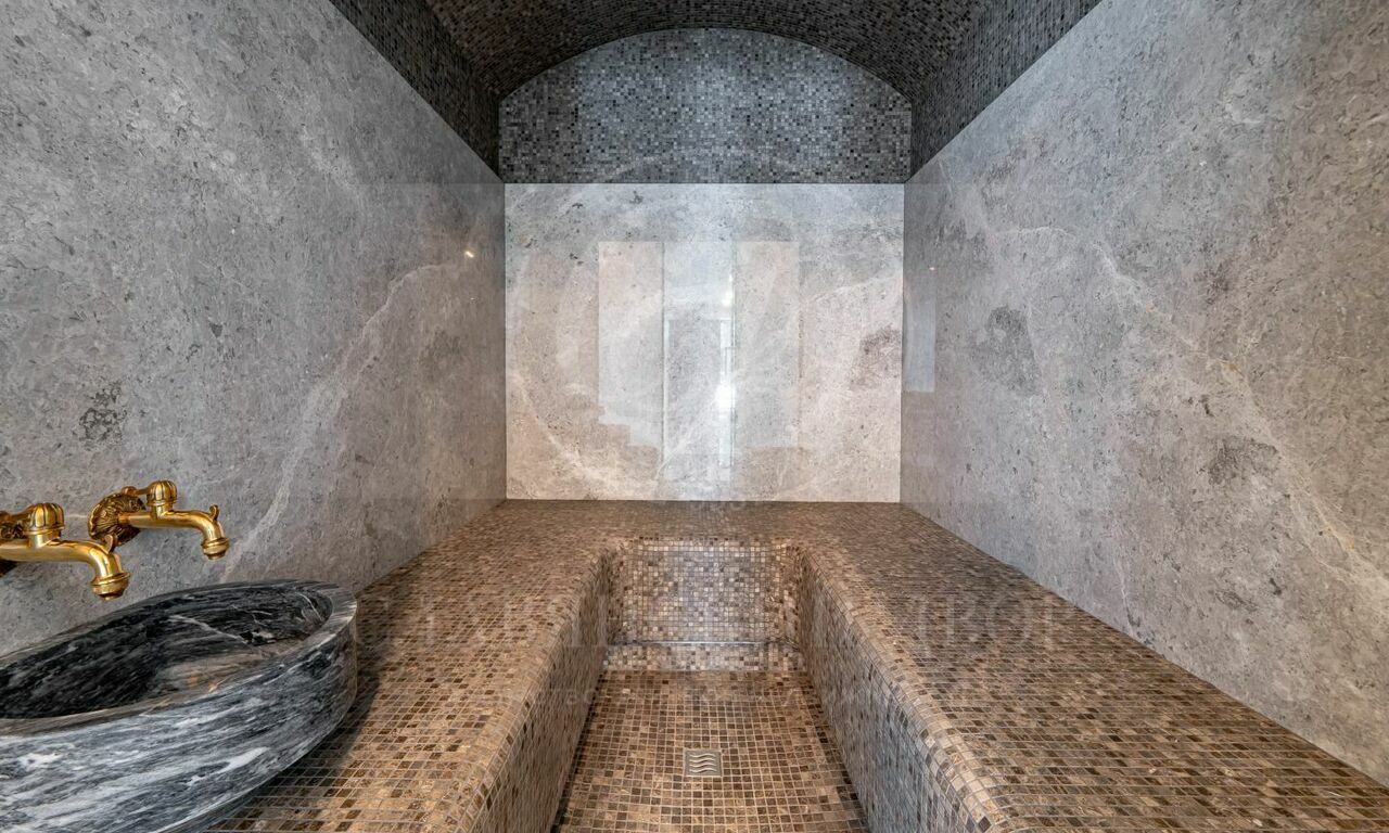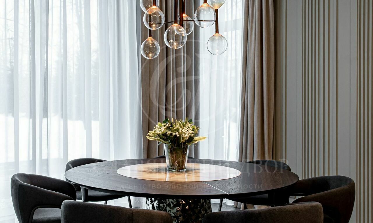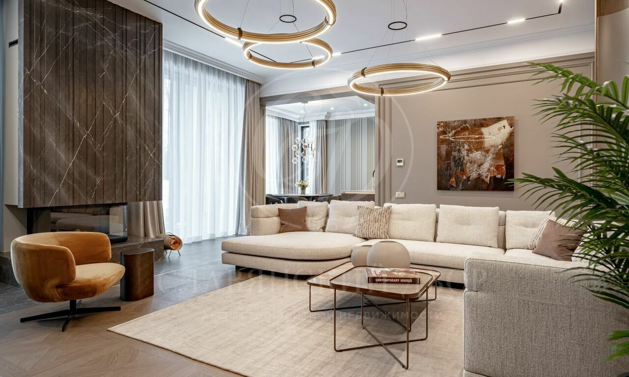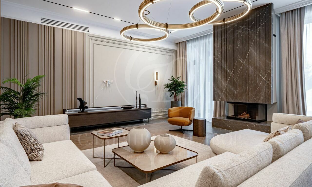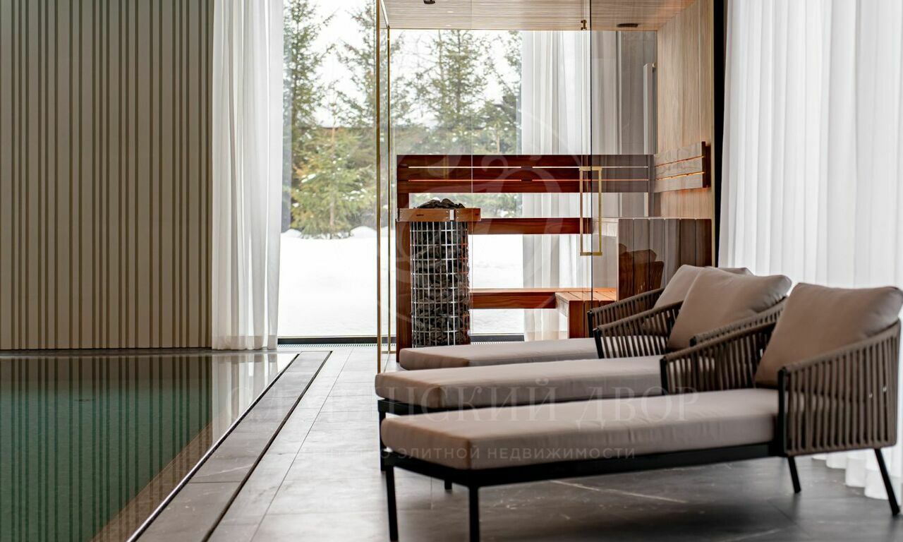 На продажу предлагается новый современный дом площадью 835 кв.м. с 5 спальнями, расположенный на видовом участке 25 соток в охраняемом коттеджном посёлке «Монтевиль» на Новой Риге. Планировочное решение дома включает: парадную кухню, рабочую кухню, гостиную с дровяным камином, 5 спален, кабинет, бассейн 12 метров, сауну, хамам, гараж на 2 м/м. Отдельно на участке расположен дом для персонала.