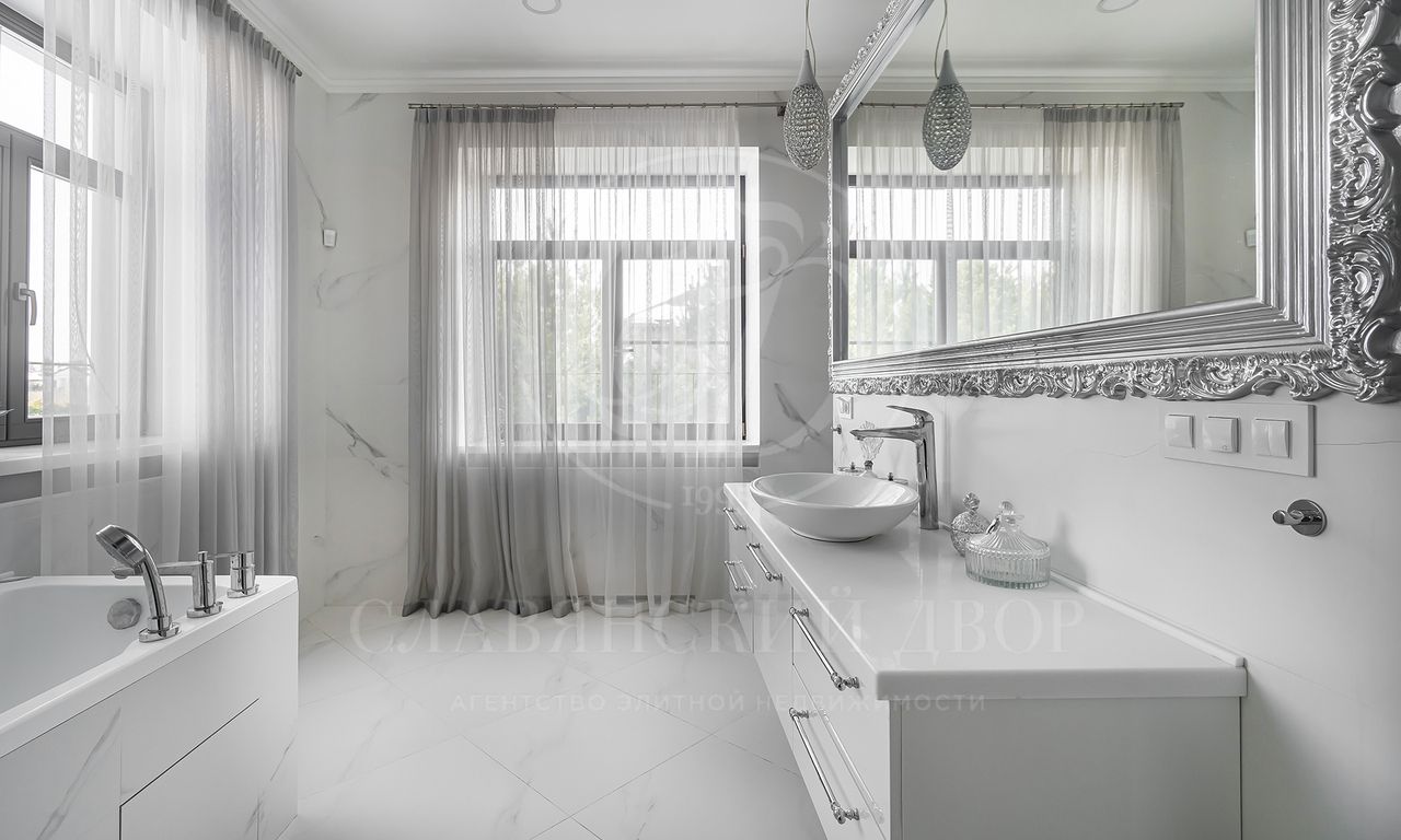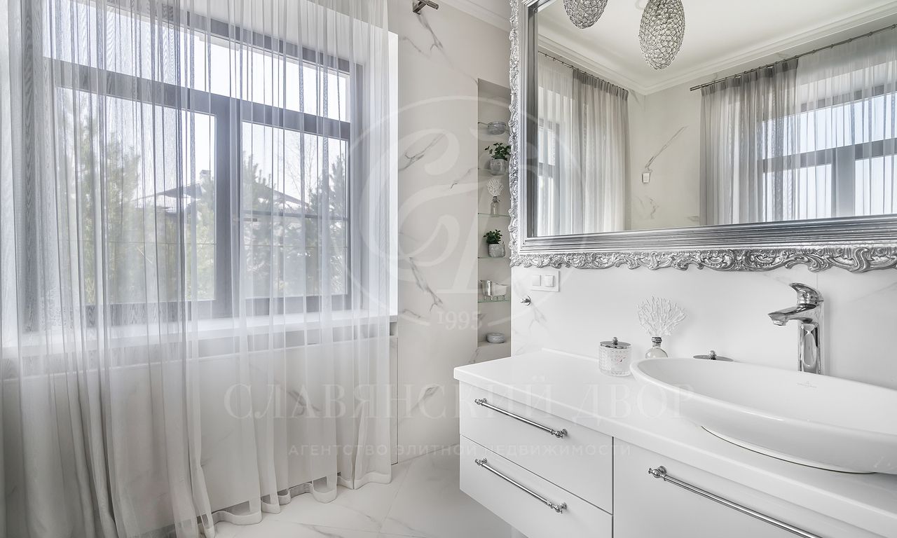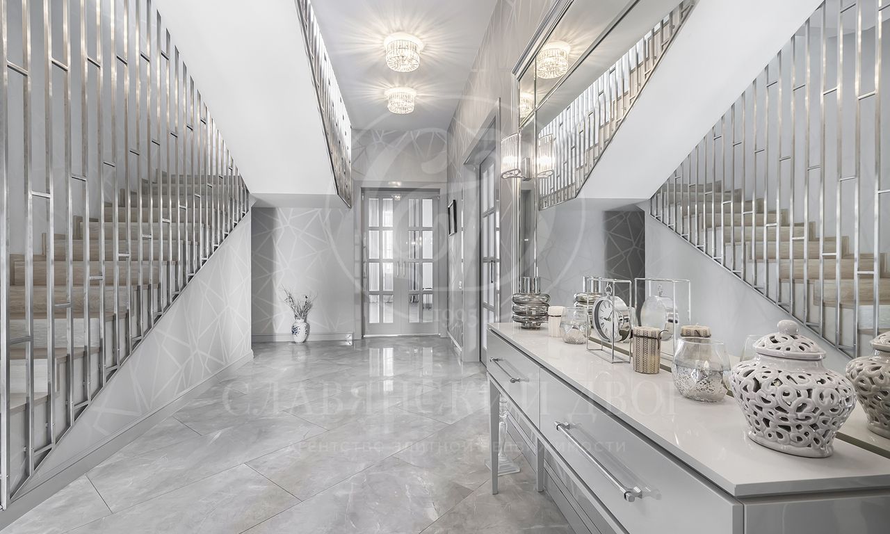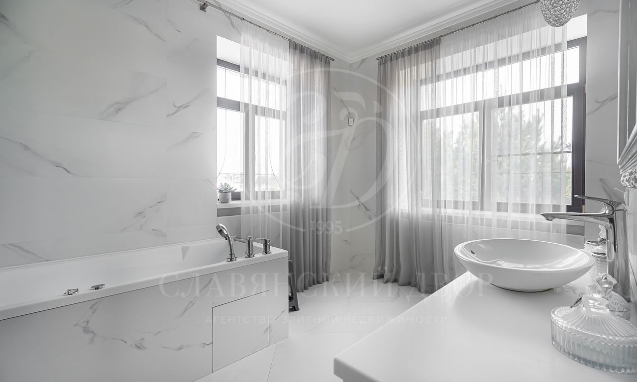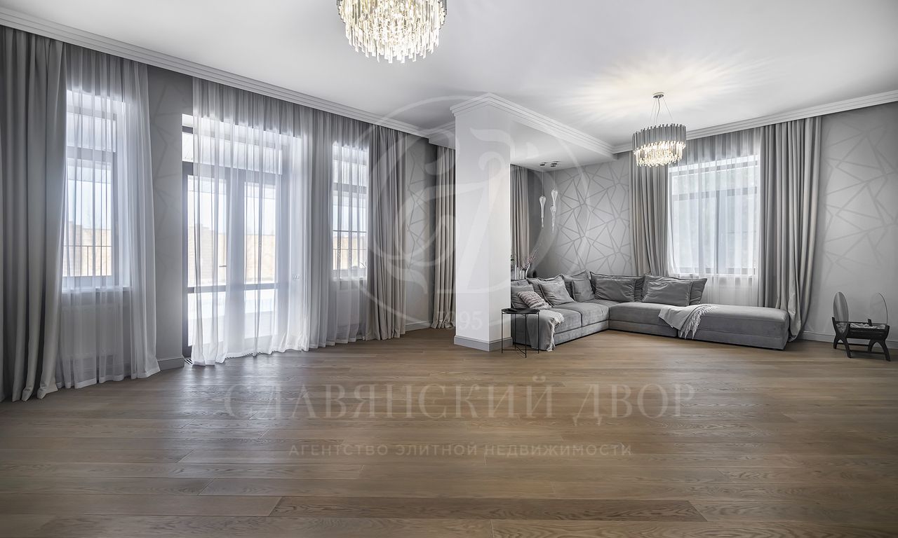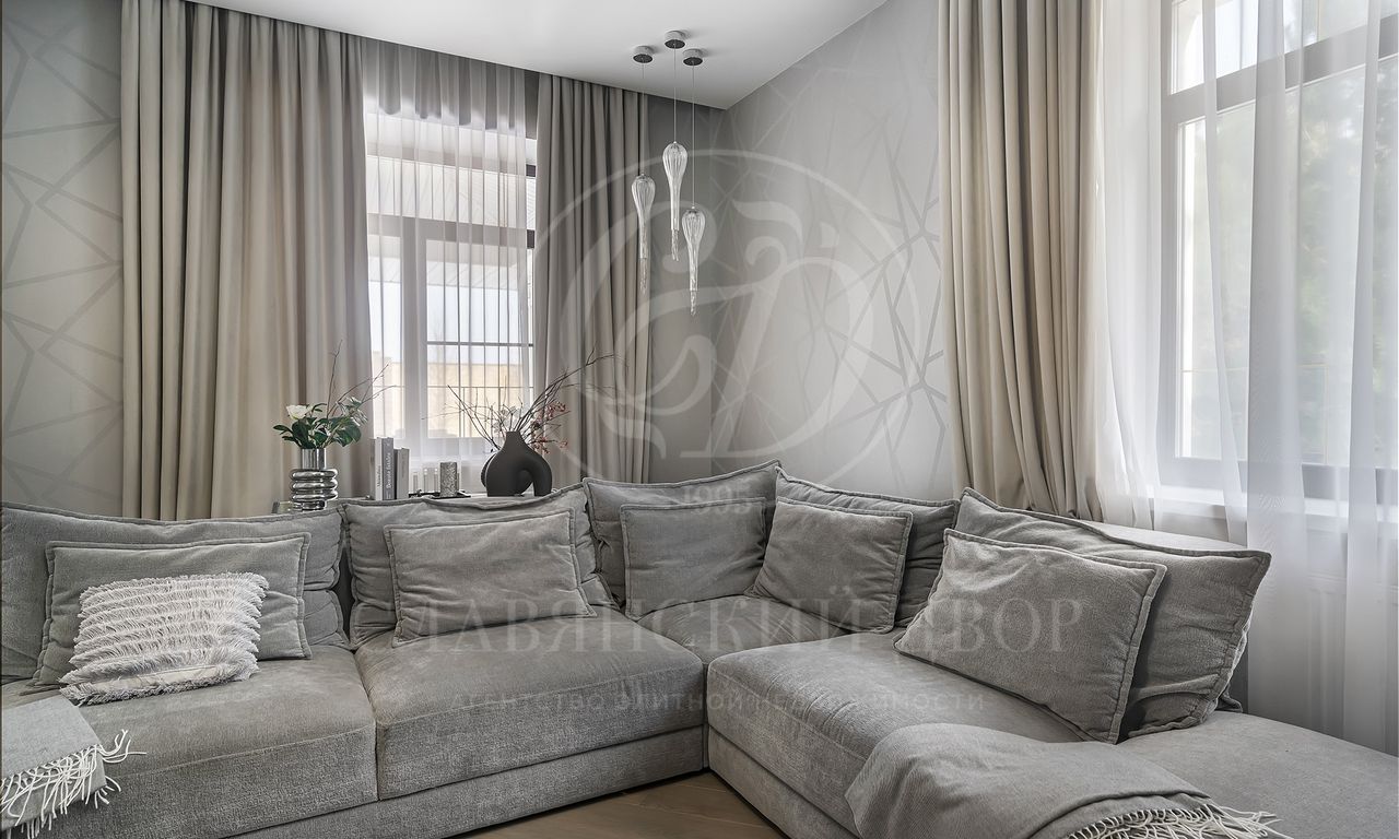 На продажу предлагается дом 470 кв.м. под ключ с современным ремонтом на участке 30 соток в элитном коттеджном поселке «Гринфилд». На приватном земельный участке 30 соток помимо основного дома расположен гараж 120 кв.м. с навесом на 2 м/м.