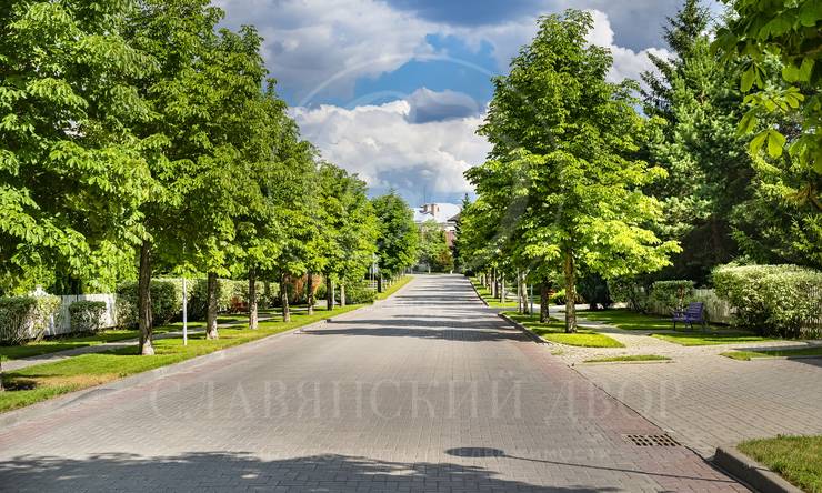 Внутренние автомобильные, велосипедные и пешеходные дорожки вымощены плиткой. По всей территории поселка разбиты клумбы и газоны. Вдоль проезжей части, тротуаров и аллей, установлены осветительные фонари.