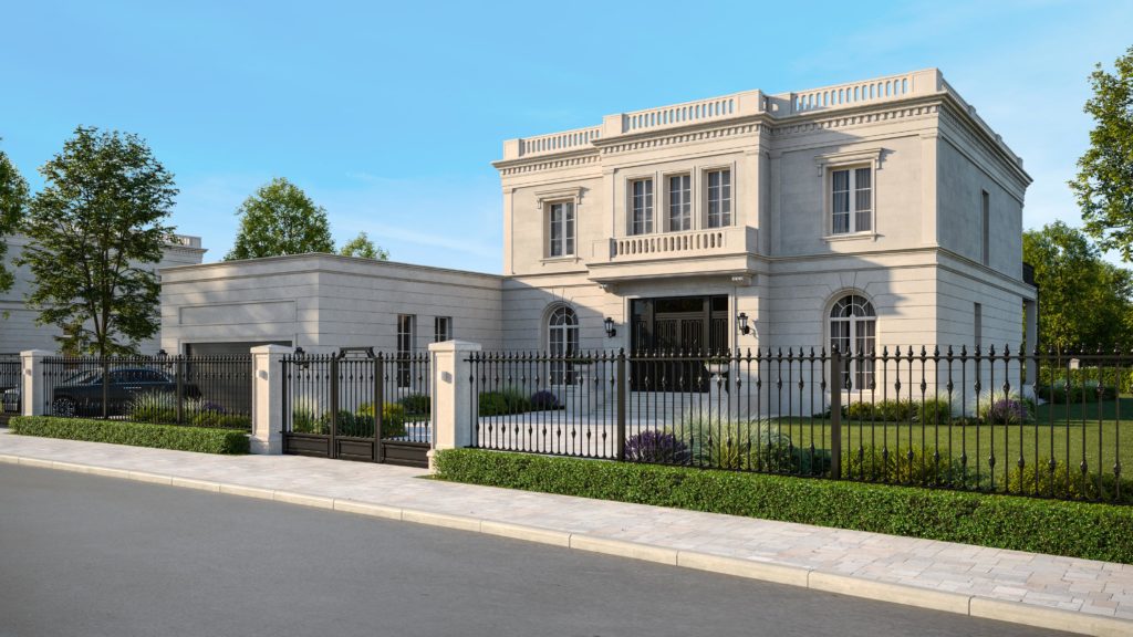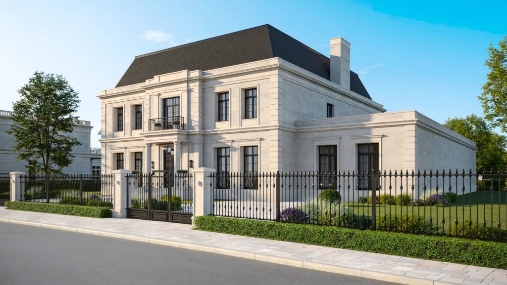Застройщик создал уникальную концепцию поселка с единым архитектурным стилем. Все дома выполнены в современной классике с белоснежными фасадами из натурального камня. Каждый проект индивидуален – нет одинаковых домовладений, но общее настроение и стилистика объединяют территорию в гармоничный ансамбль.