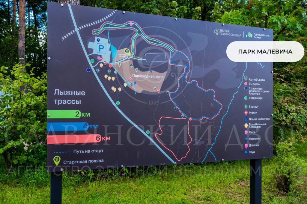 Особое преимущество Ромашково – прямой выход из поселка на велодорожку парка Малевича. Буквально перешел через дорогу и попадаешь в один из самых современных парков Подмосковья.