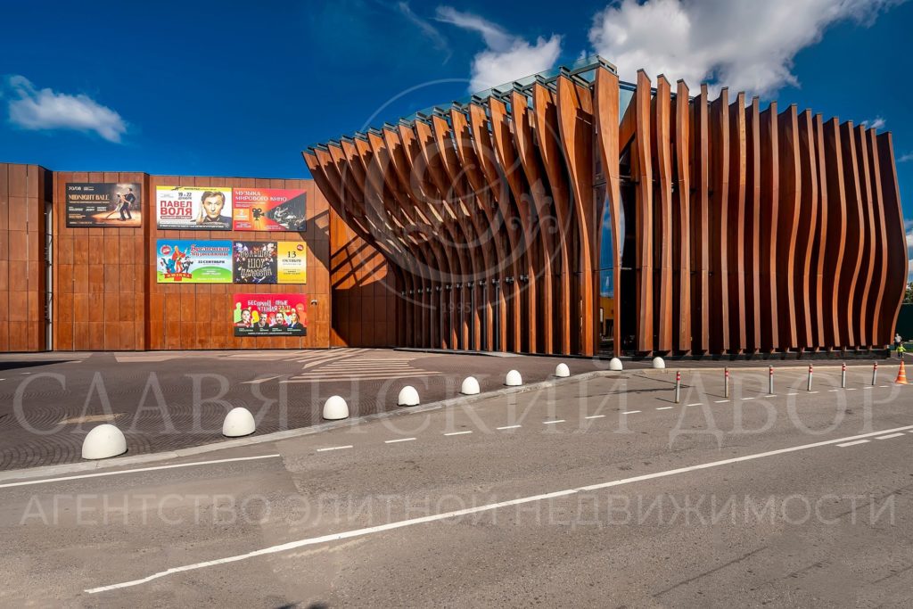Вся архитектурная композиция комплекса очень продумана и копирует живописную естественность натурального загородного поселения. Главный архитектор проекта – Юрий Григорян. Григорян же построил великолепный концертный зал вместе с итальянским архитектором Антонио Читтерио, который занимался внутренней отделкой и проектировал мебель для зрительного зала, фойе и баров. Фасад здания концертного зала отделан пилонами из канадского кедра, напоминающими фантастические скульптуры деревьев. При движении вокруг здания возникает неповторимое ощущение, что фасад «оживает», движется вместе с посетителем.