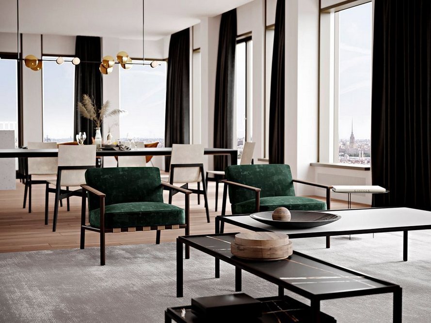 Интерьеры лобби, холлов и других помещений общего пользования по проекту будут выполнены элегантно: скульптурные решения, минималистические элементы декора, живые растения.