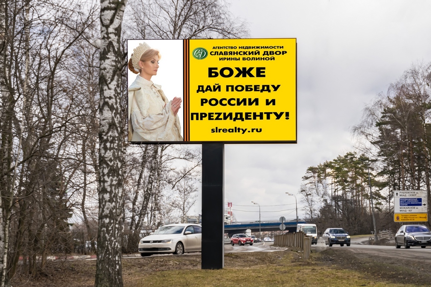 Ярко желтые баннеры со слоганом «Боже, дай Победу России и Президенту» в Подмосковье, Крыму и Сочи новой социально-патриотической акции