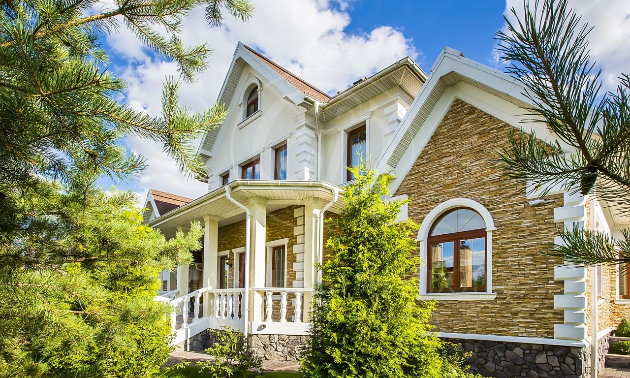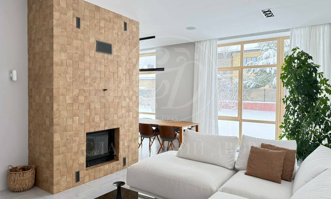 Просторный двухэтажный коттедж с панорамными окнами и дизайнерской отделкой из натуральных материалов.